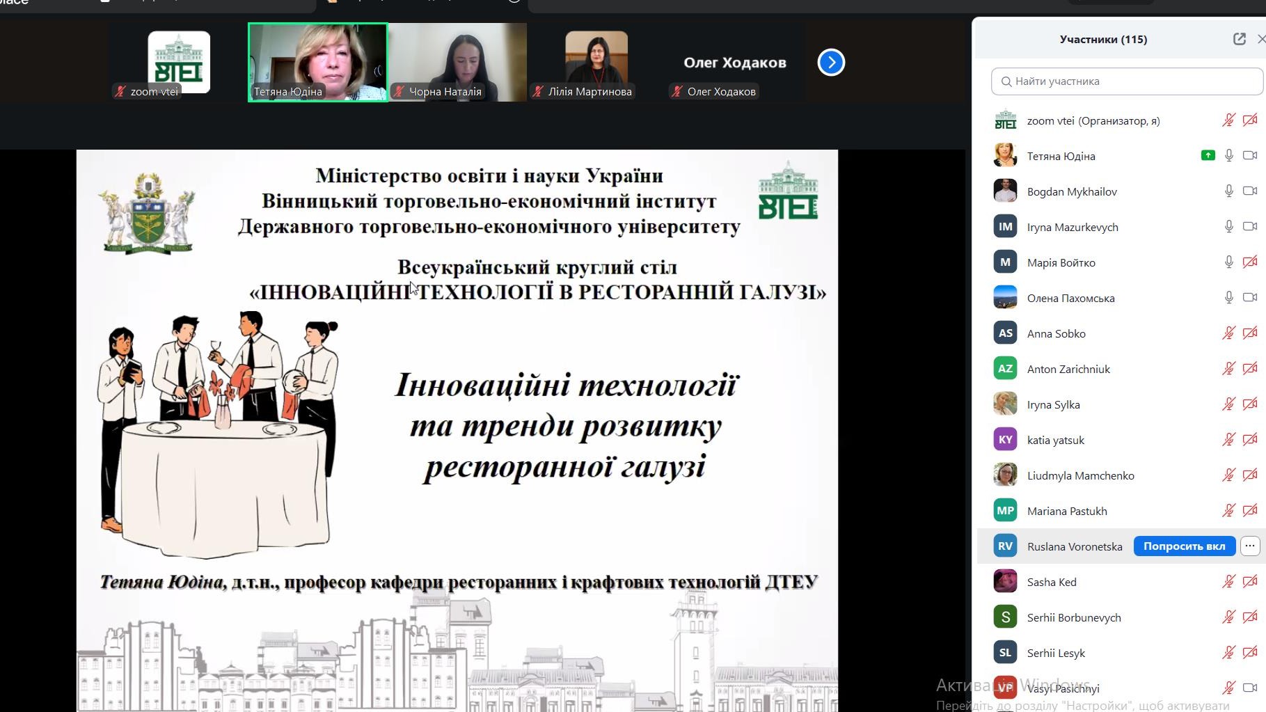 Спікерами на круглому столі виступили науково-педагогічні працівники з Національного університету харчових технологій, Державного торговельно-економічного університету, Вінницького торговельно-економічного інституту ДТЕУ, фахівці-практики з Вінниці та інших міст України. У якості слухачів участь у заході взяли здобувачі вищої освіти, які навчаються за спеціальностями G13 Харчові технології / 181 «Харчові технології», J2 Готельно-ресторанна справа та кейтеринг / 241 «Готельно-ресторанна справа», J3 Туризм та рекреація / 242 «Туризм і рекреація» / 242 «Туризм» ОС «бакалавр», «магістр», та роблять перші кроки на шляху свого професійного становлення.