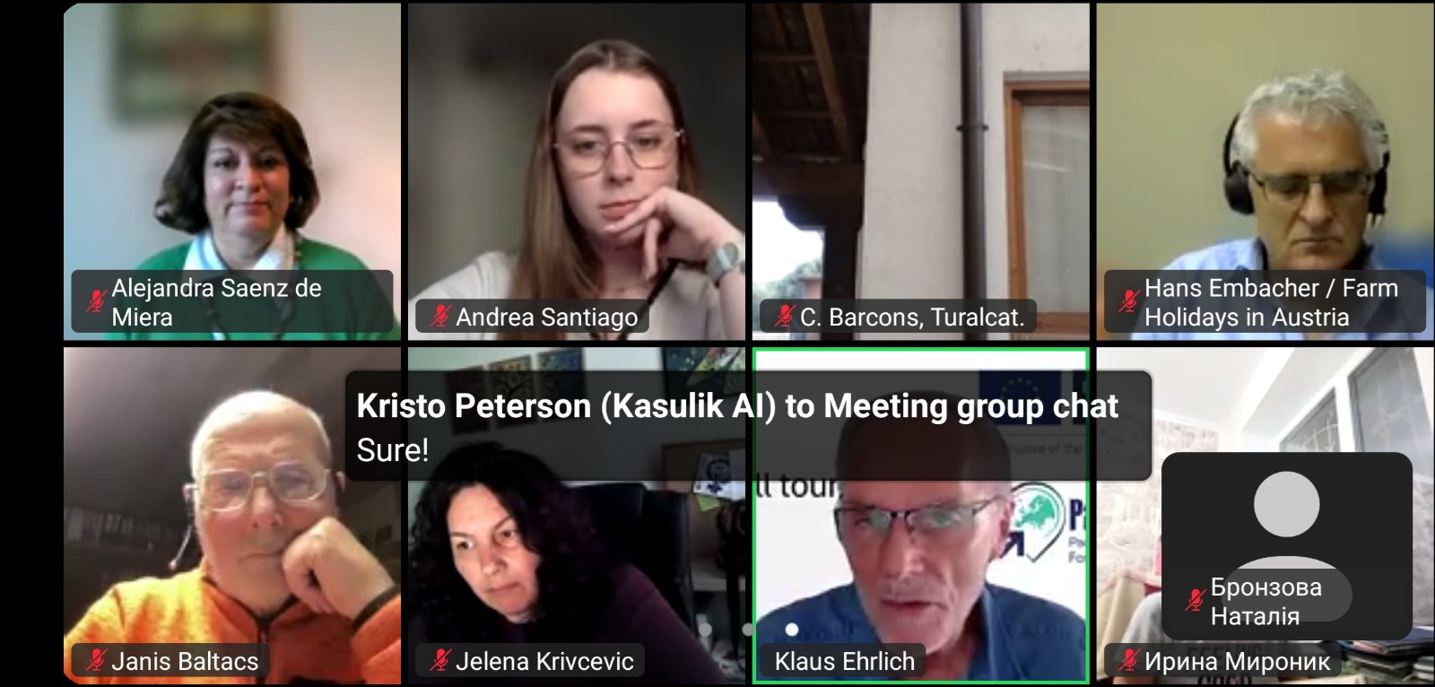У якості спікерів на вебінарі виступили стратег і тренер зі штучного інтелекту Крісто Петерсон, директор Асоціації «Austrian Farm Holidays» Ганс Ембахер, туристичний гід у Парижі Алехандра Саенс де Мієра, виноробка та підприємниця з Естонії Тііна Куулер, операційна менеджерка та керівниця якості у Sweet Accommodations з Іспанії Андреа Сантьяго.