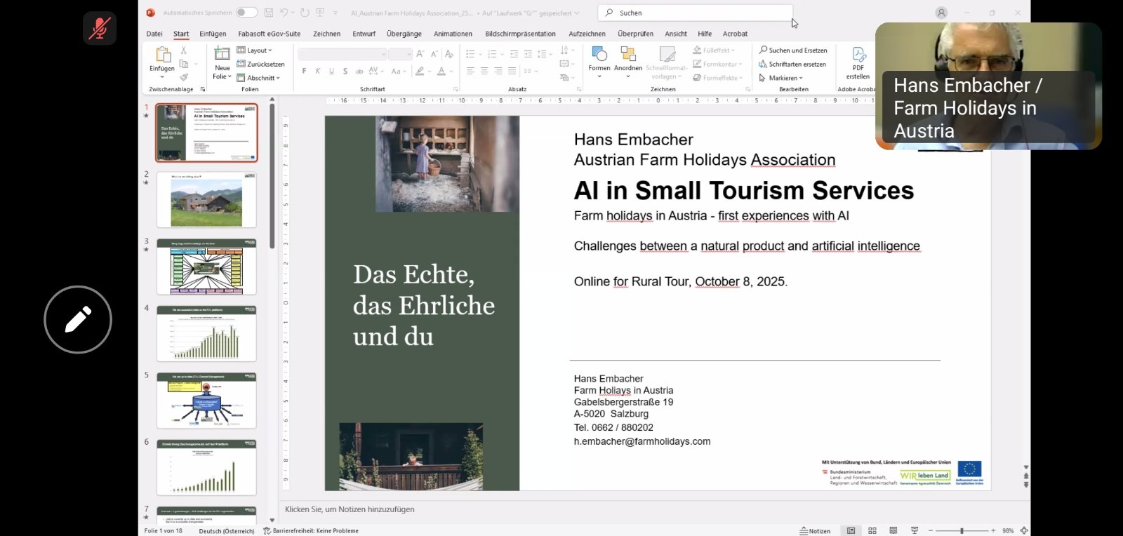 9 жовтня 2025 року науково-педагогічні працівники кафедри туризму та готельно-ресторанної справи, здобувачі вищої освіти за спеціальностями J3 Туризм і рекреація, J2 Готельно-ресторанна справа та кейтеринг взяли участь в онлайн-вебінарі «ШІ в туристичних послугах», організованому Європейською федерацією сільського туризму Ruraltour у межах ініціатив PacTS4ALL та Pact for Skills Tourism LSP та розробленому для мікро-, нано- та само зайнятих провайдерів туристичних послуг у сфері розміщення та суміжних із ними.