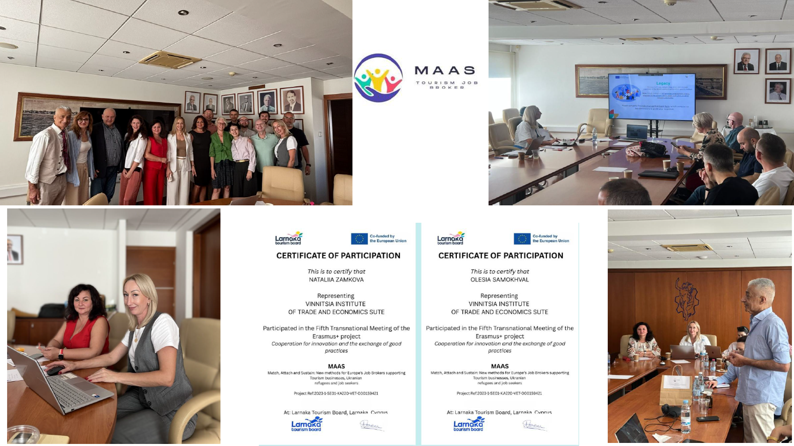 У рамках реалізації проєкту ВТЕІ ДТЕУ ERASMUS+ MAAS “Match, Attach and Sustain: New methods for Europe`s Job Brokers” наприкінці жовтня відбулася п’ята транснаціональна зустріч, яка була організована Ларнацькою туристичною організацією (м. Ларнака, Кіпр).