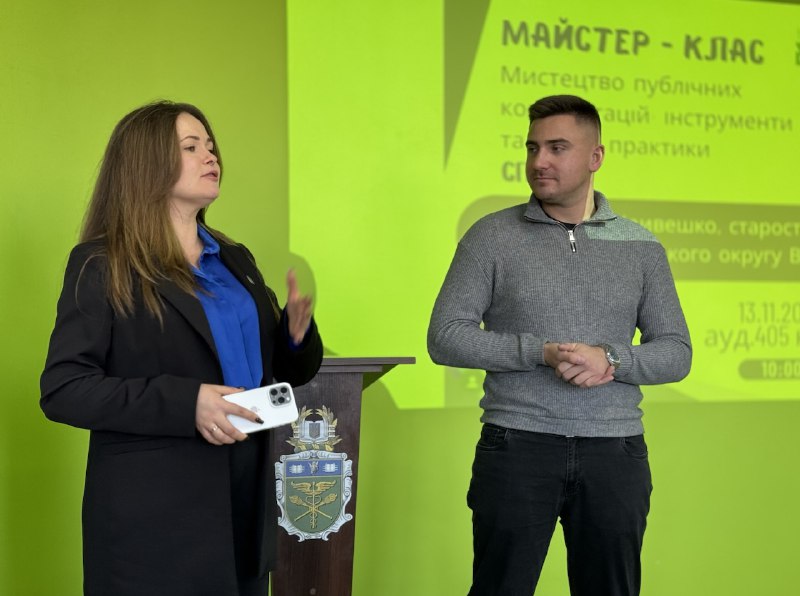 13 листопада 2025 року відбувся майстер-клас на тему «Мистецтво публічних комунікацій: інструменти та кращі практики» для студентів спеціальностей «Публічне управління та адміністрування», «Менеджмент», «Бізнес-адміністрування», організований кафедрою менеджменту та публічного управління. Секретами управління поділився Владислав Кривешко, староста Вінницько-Хутірського старостинського округу ВМР, а також випускник магістерського рівня спеціальності «Публічне управління та адміністрування» ВТЕІ ДТЕУ.