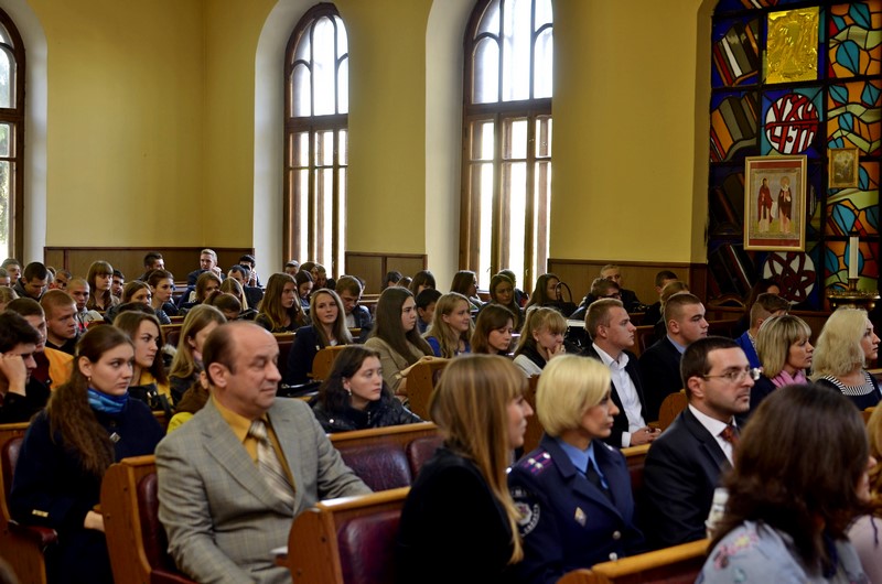 Урочисту подію відкрила директор ВТЕІ КНТЕУ Замкова Наталія Леонідівна, а також майбутніх юристів прийшли привітати фахівці правової сфери, чия повсякденна діяльність забезпечує стабільне функціонування судових та правоохоронних органів нашого міста, яка гарантує дотримання конституційних прав та законних інтересів осіб, а саме Вікул Олександр Павлович – начальник відділу організації позовної роботи прокуратури Вінницької області; Бернада Євген Валерійович – суддя Вінницького міського суду Вінницької області; підполковник міліції Шидловська Анастасія Олександрівна – старший слідчий органів внутрішніх справ при УМВС України у Вінницькій області.