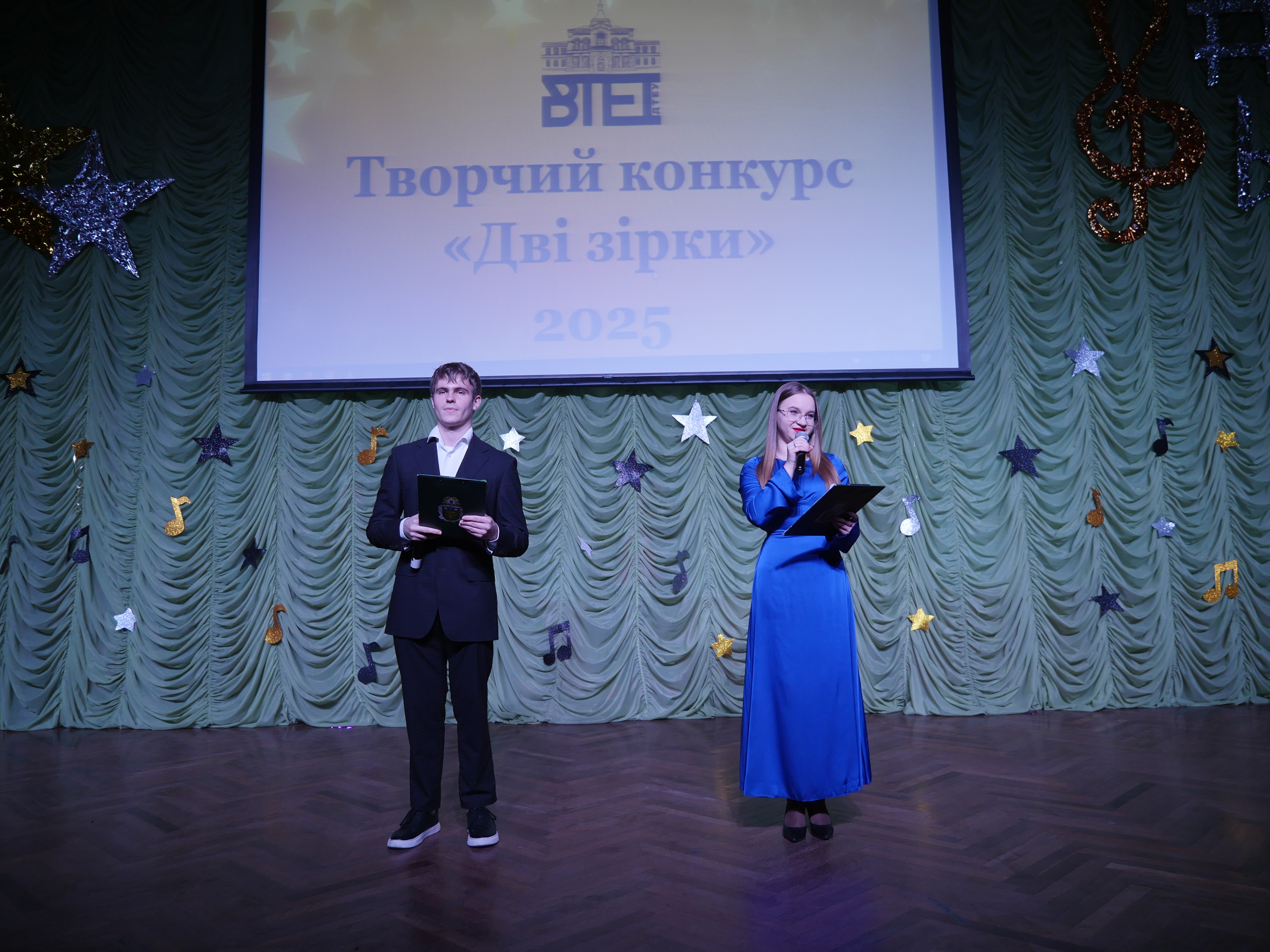За сприянням директора ВТЕІ ДТЕУ Наталії Замкової, 04 грудня 2025 року в актовій залі інституту відбувся традиційний конкурс талантів «Дві зірки».