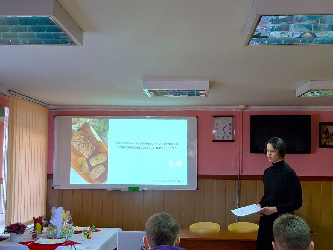 На засіданні гуртка (тема – «Безглютенові та безлактозні борошняні кондитерські вироби») студенти продемонстрували високий рівень підготовки, представивши змістовні та ґрунтовні презентації, у яких висвітлили сучасні тенденції виробництва безглютенової та безлактозної продукції, особливості підбору сировини, технологічні аспекти приготування, обґрунтували актуальність такої продукції на ринку продуктів харчування. Особливу увагу було приділено питанням якості, безпечності та харчової цінності аналізованої продукції.