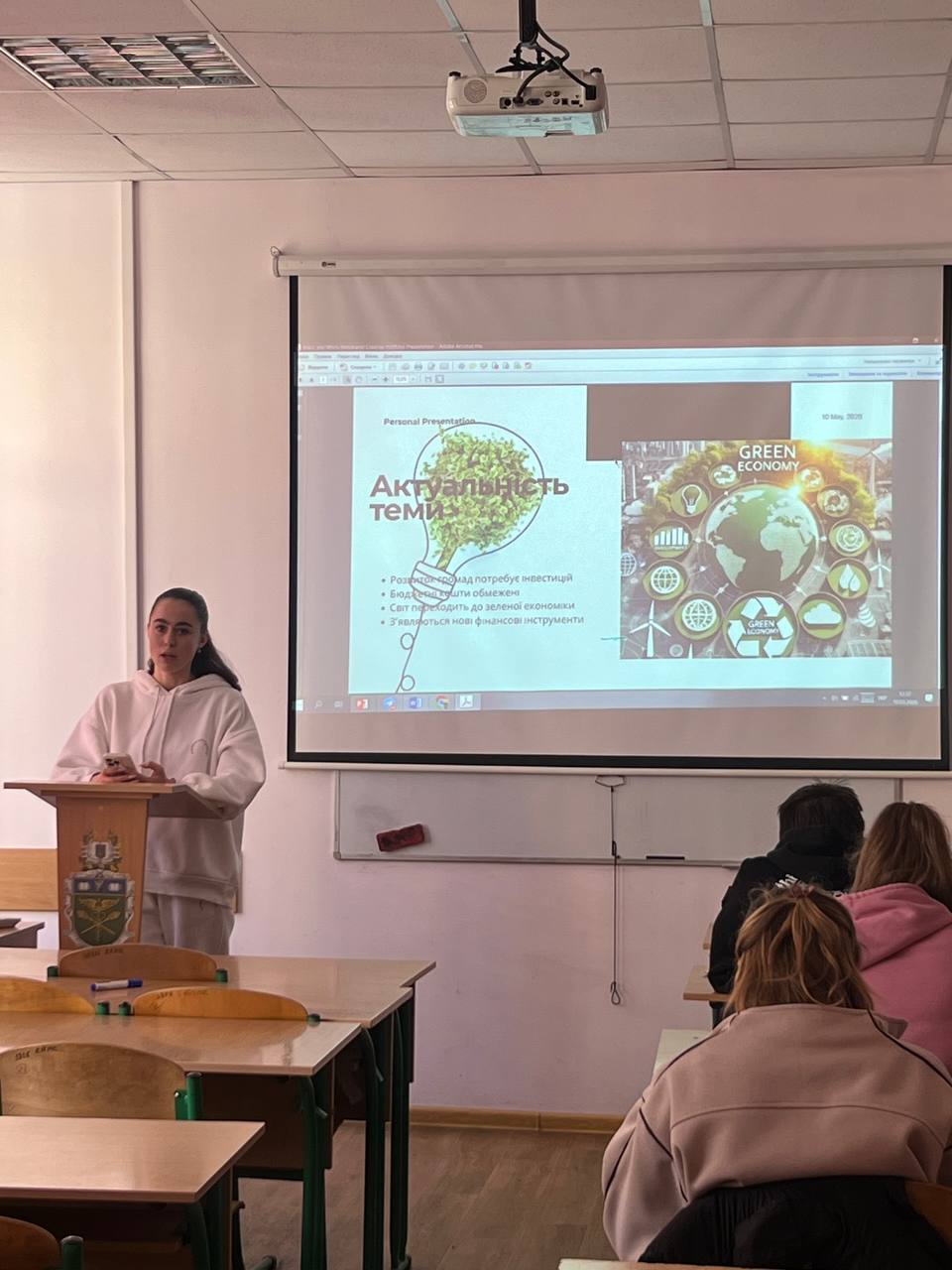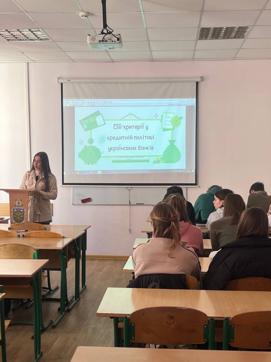 10 березня 2026 року в рамках XІV Фестивалю студентської науки кафедрою фінансів було проведено відкрите засідання наукового гуртка «Сучасна фінансова політика України: проблеми та перспективи» на тему «ESG-фінанси та зелені інвестиції: нові тренди у фінансовій політиці України».