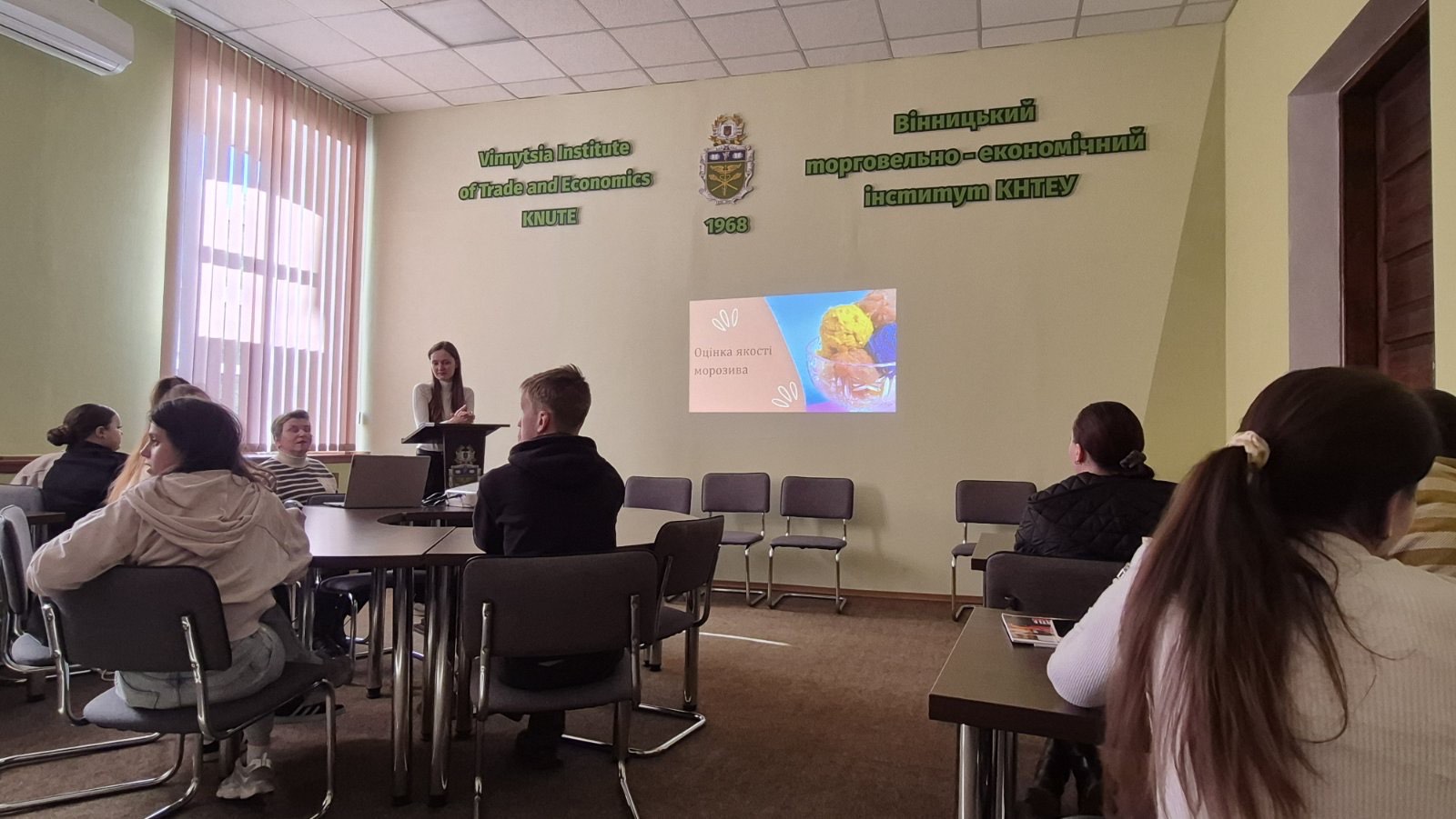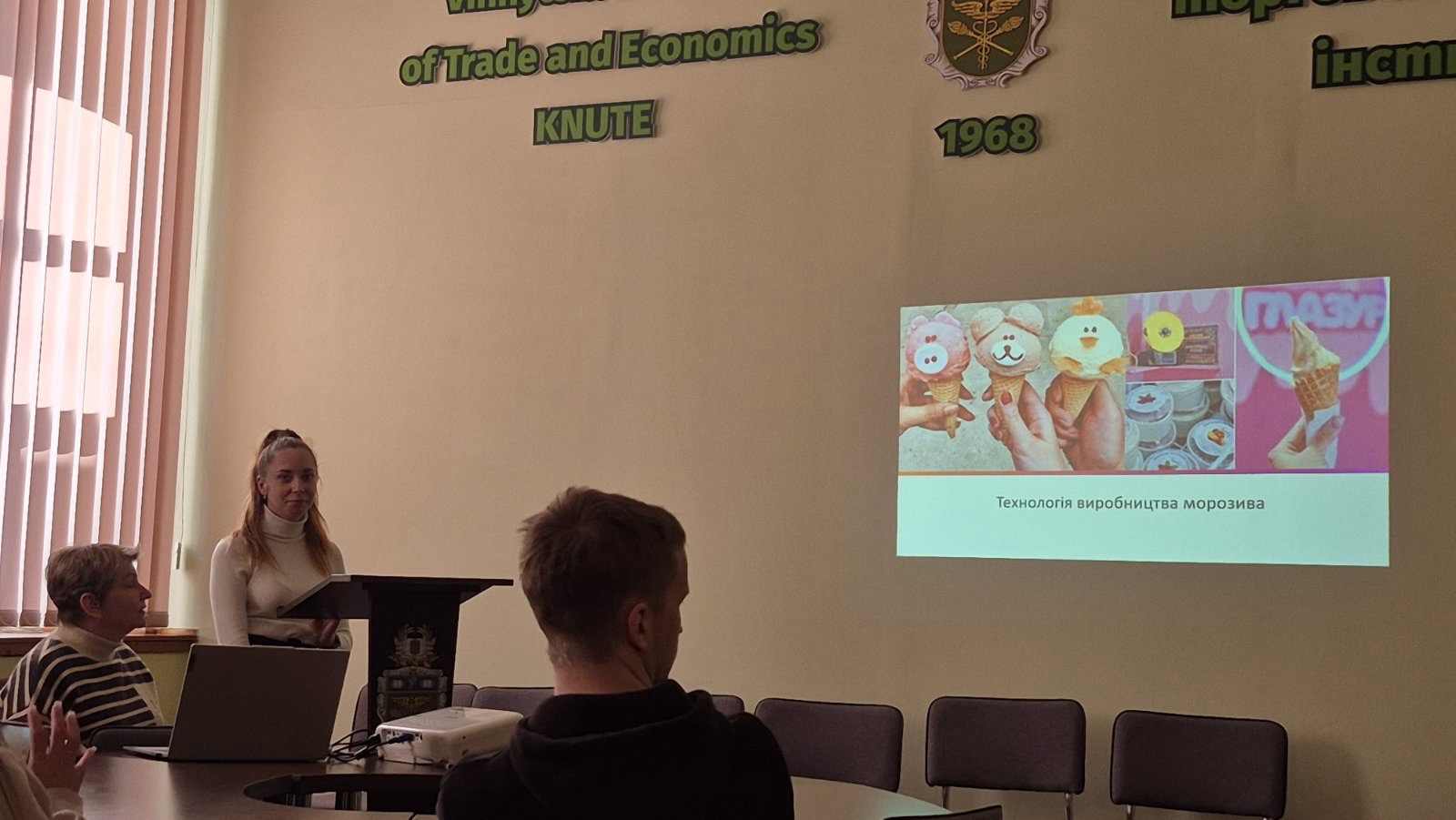 На засіданні гуртка, темою якого були «Дослідження технології виробництва морозива», здобувачі вищої освіти продемонстрували високий рівень підготовки, представивши змістовні презентації, у яких висвітлили сучасні тенденції виробництва морозива, особливості підбору сировини, технологічні аспекти виробництва, обґрунтували актуальність такої продукції на ринку продуктів харчування. Особливу увагу було приділено питанням якості, безпечності та харчової цінності аналізованої продукції.