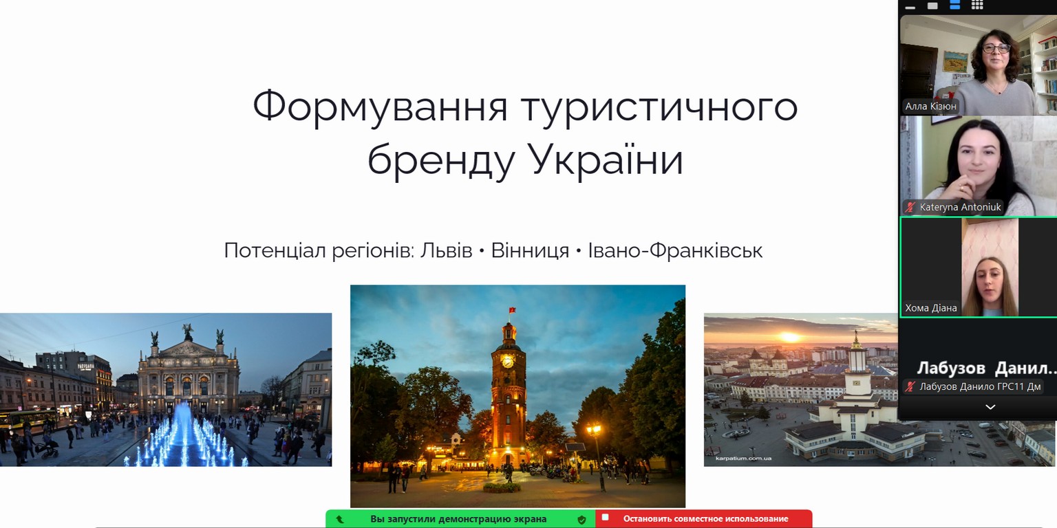 - Шпинь Валерія, здобувач вищої освіти ОС «бакалавр» ОП «Туризм і рекреація» групи ТР-31д з доповіддю на тему «Формування та позиціонування бренду туристичних дестинацій»;