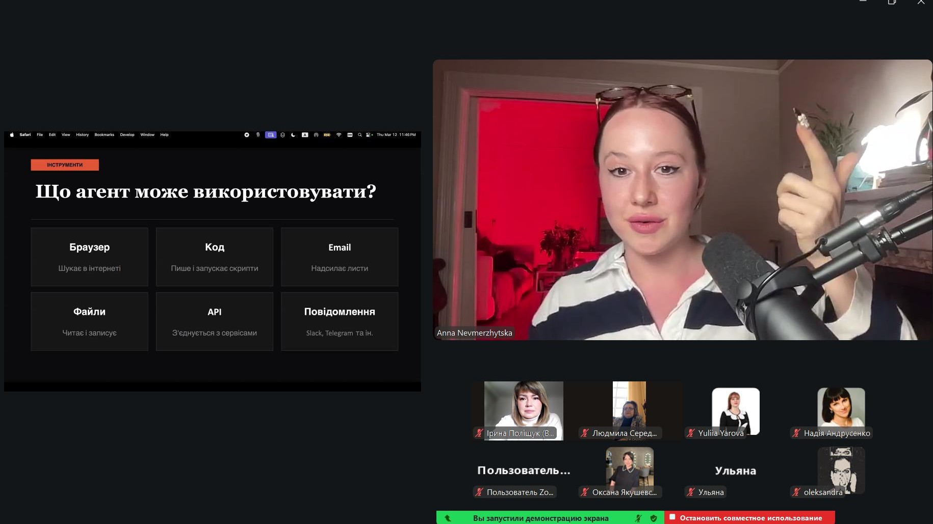 У межах презентації Анна Невмержицька розглянула: особливості використання AI-агентів у маркетингових процесах; зміни у конкурентному середовищі стартапів у Кремнієвій долині; сучасні інструменти автоматизації маркетингу, які дозволяють невеликим командам масштабувати бізнес; нові підходи до комунікації з аудиторією, зокрема через відеоконтент.