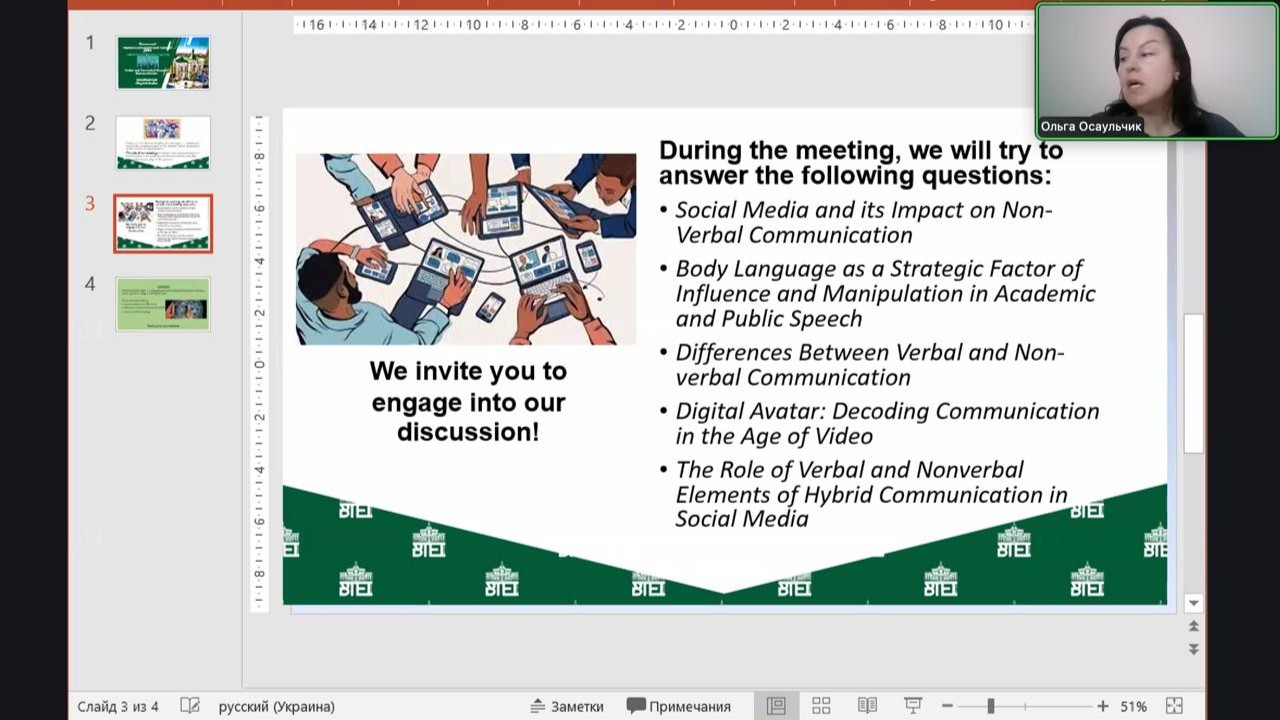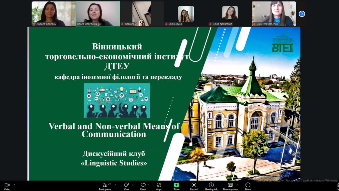 17 березня 2026 року кафедрою іноземної філології та перекладу Вінницького торговельно-економічного інституту ДТЕУ було проведено відкрите засідання дискусійного клубу «Linguistic Studies» на тему «Verbal and Non-verbal Means of Communication».
