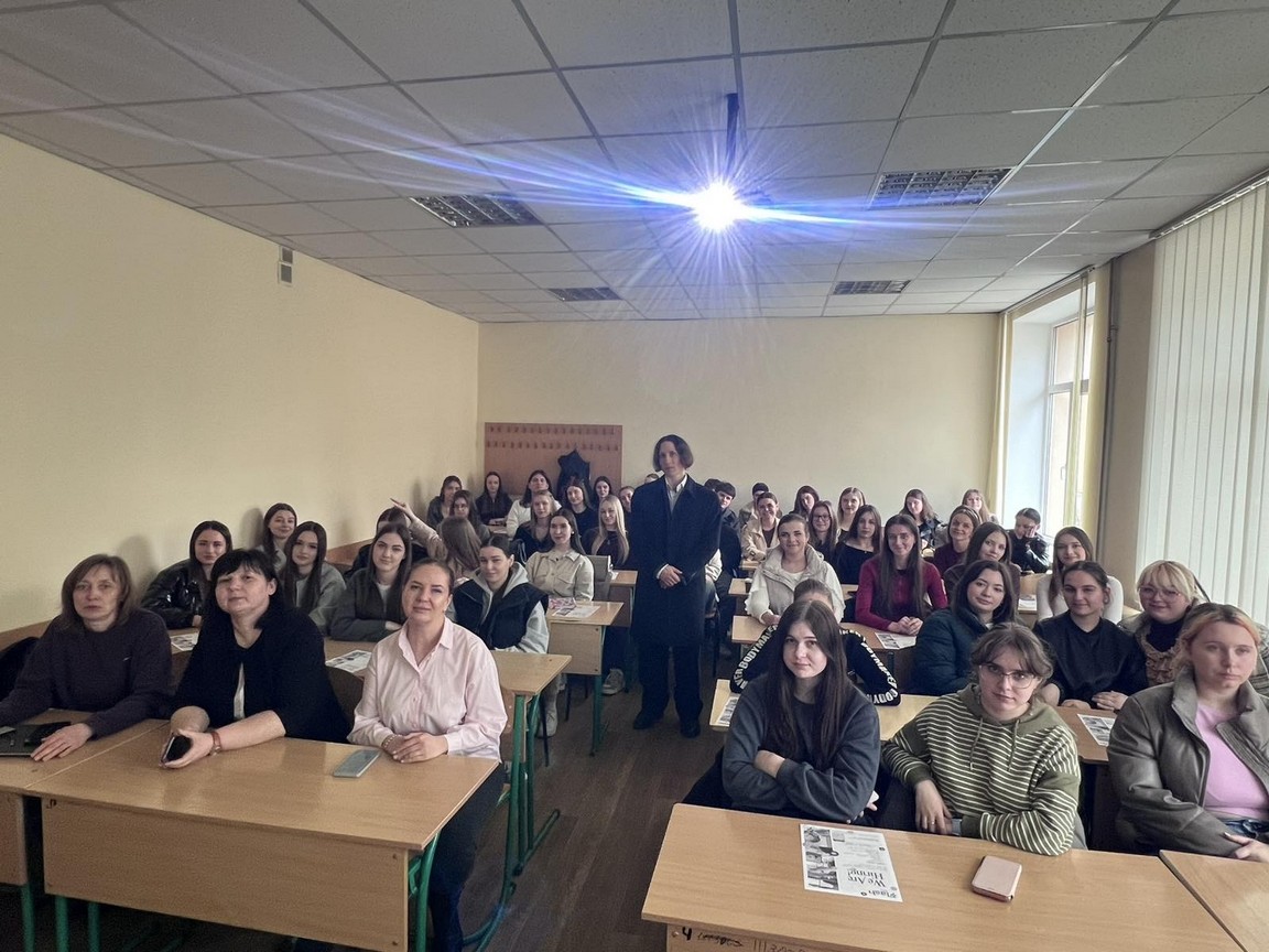 У межах проведення тижня обліково-фінансового факультету кафедра іноземної філології та перекладу провела панельну дискусію «Speak. Share. Inspire». Здобувачі факультету різних курсів та спеціальностей мали можливість поспілкуватися із носієм мови Майклом Вареницею, викладачем школи англійської мови FLASH, який поділився практичними знаннями та досвідом у сфері міжнародного бізнесу.
