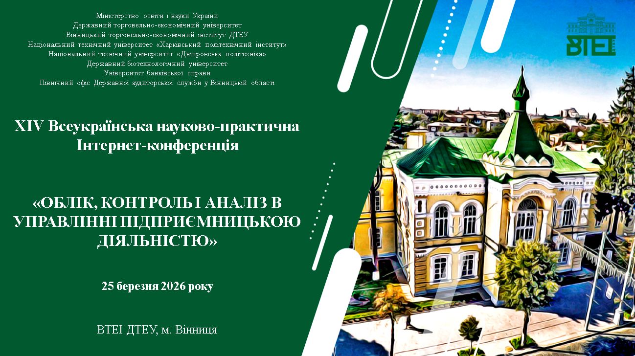 25 березня 2026 року кафедрою обліку та оподаткування ВТЕІ ДТЕУ організовано та проведено ХІV Всеукраїнську науково-практичну Інтернет-конференцію «Облік, контроль і аналіз в управлінні підприємницькою діяльністю».