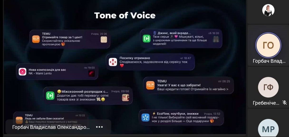 У рамках заходу було здійснено огляд сучасного стану соціальних мереж як важливого елементу цифрового середовища. Проаналізовано їхню роль як ефективного інструменту продажів, зокрема підходи до залучення аудиторії та побудови комунікації з клієнтами. Окреслено ключові тенденції digital-маркетингу, серед яких персоналізація контенту, розвиток відеоформатів та зростання впливу інфлюенсерів. Також визначено основні аспекти впливу соціальних мереж на поведінку споживачів і процес прийняття ними рішень.