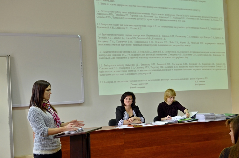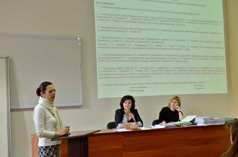Про стан підготовки докторських та кандидатських дисертацій викладачами інституту. |