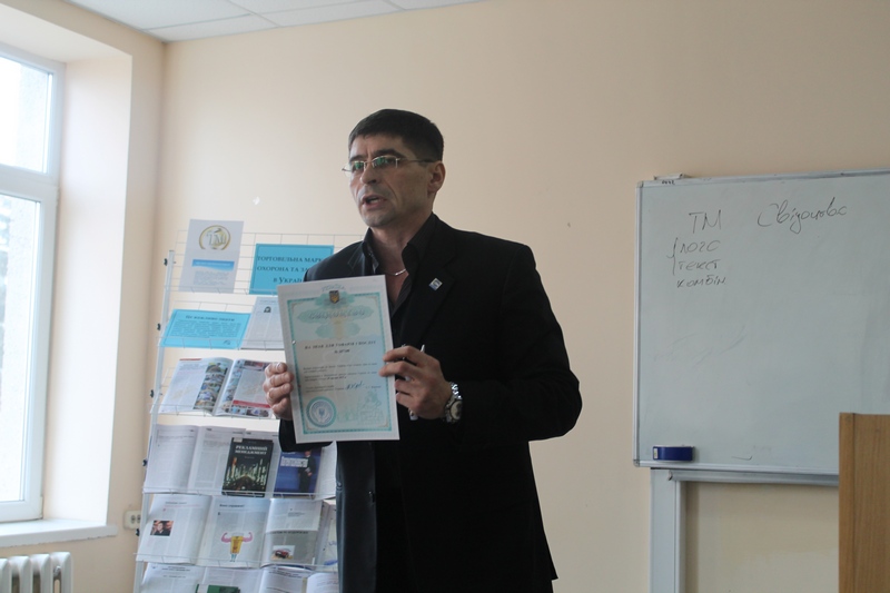 Під час виступу Ігор Шевченко розповів про порядок реєстрації фірмового найменування, знаків для товарів та послуг, навів приклади порушень прав на вказані об’єкти, відповідав на запитання студентів, продемонстрував свідоцтво на знак для товарів та послуг. Також для студентів працівники бібліотеки підготували інформаційний супровід, де були представлені матеріали із фондів бібліотеки на тему «Торговельна марка: охорона та захист в Україні».