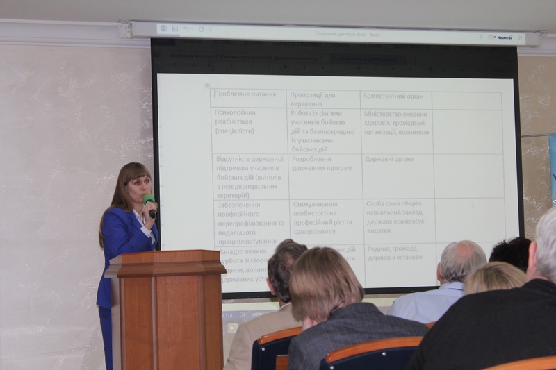 Модератором роботи секції «Соціальна адаптація: за яких обставин» була доцент кафедри психології, соціології та права, к.ю.н. І.М. Білоус. Після робіт в секціях учасники конференції записали відеозвернення до світових лідерів з проханням забезпечити вирішення військових конфліктів шляхом мирних переговорів.