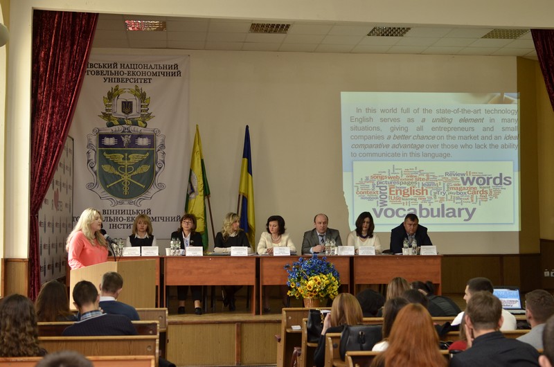 2016 рік за Указом Президента України Петра Порошенка оголошено роком англійської мови в Україні. Здобувачі вищої освіти підготували доповіді англійською мовою, які оголошені на пленарному та секційних засіданнях. Студентське наукове товариство «ВАТРА», Рада студентського самоврядування, здобувачі вищої освіти інституту організували флешмоб на честь урочистого відзначення 70-річчя з часу заснування КНТЕУ. У засіданнях секцій брали участь представники наступних вищих навчальних закладів: Виноградова Аліна, Поволоцький Вадим (I курс, спеціальність «Економіка підприємства») - Харківський торговельно-економічний інститут КНТЕУ (1 секція); Поліщук Анастасія (III курс, спеціальність «Бухгалтерський облік») - Вінницький торговельно-економічний коледж КНТЕУ (секція 2), Гречановська Аріна, Тарасюк Наталія (III курс, спеціальність «Товарознавство та комерційна діяльність») - Вінницький торговельно-економічний коледж КНТЕУ (3 секція), Штельмах Олена, Мельник Світлана, (III курс, спеціальність «Товарознавство та комерційна діяльність»), Ковальчук Ірина, Соць Сергій (ІІ курс, спеціальність «Товарознавство та комерційна діяльність») - Вінницький торговельно-економічний коледж КНТЕУ (секція 7), Семчук Анастасія (III курс, спеціальність «Економіка підприємства») - Бердичівський коледж промисловості, економіки та права (секція 10). Цікаві, змістовні доповіді на секційні засідання підготували члени студентського наукового товариства «ВАТРА»: Аршаулов Віталій, Загоруйко Марина, Кухар Ірина, Мацієвський Микола, Покиньборода Альона, Танасієнко Олена. Кращі доповіді на засіданнях секцій оголосили наступні здобувачі вищої освіти: секція 1 - Балуєв В.В. (ВТЕІ КНТЕУ), Виноградова А.С. (ХТЕІ КНТЕУ), Кирилюк І.А. (ВТЕІ КНТЕУ); секція 2 - Дмітрієва Т.І., Пастух М.Д. (ВТЕІ КНТЕУ); секція 3 - Загоруйко М.О., Кошова А.В., Маслюковська Я.А., Яворська Н.З. (ВТЕІ КНТЕУ), Гречановська А.А. (ВТЕК КНТЕУ); секція 6 - Подвисоцький Я.О., Танасієнко О.В. (ВТЕІ КНТЕУ); секція 7- Кипорук Н.С., Шклярук М.В. (ВТЕІ КНТЕУ), Штельмах О.О., Мельник С.В. (ВТЕК КНТЕУ); секція 8 - Данилюк Л.П., Ткачук О.М., Шульц М.О. (ВТЕІ КНТЕУ); секція 9 - Андрущенко Ю.О., Кухар І.І., Маценко А.А. (ВТЕІ КНТЕУ); секція 10 - Бородій А.П., Вараниця В.С. Шевчук Л.О., Томчук А.О. (ВТЕІ КНТЕУ). За ініціативою та активною участю СНТ «ВАТРА» в рамках секційних засідань відбулись різноманітні заходи: проблемна дискусія на тему: «Розвиток ефективних взаємовідносин Антимонопольного комітету та бізнесу у Вінницькій області» за участю Слободянюка М.В., Голови Вінницького обласного територіального відділення Антимонопольного комітету України; тренінг за інформаційної підтримки Проекту ЄС/ПРООН "Місцевий розвиток, орієнтований на громаду" на тему: «Я – особистість активної дії. Робота в команді», який провела к.е.н., доцент Махначова Н.М.; тренінг на тему: «Сучасні засоби та методи відеозйомки» за участю Ткачука А.Ф., співзасновника агенства відеовиробництва та реклами ТОВ «Фенікс Медіа», директора телеканалу «Доба», співзасновника громадської організації «Оріана-Світ»; майстер - клас на тему: «Сучасні технології розробки web-сайтів» за участю Притули Т.В., директора студії дизайну Webhit, Гронюка В.Р., здобувача освітнього ступеня «бакалавр» факультету інформаційних технологій та комп’ютерної інженерії Вінницького національного технічного університету