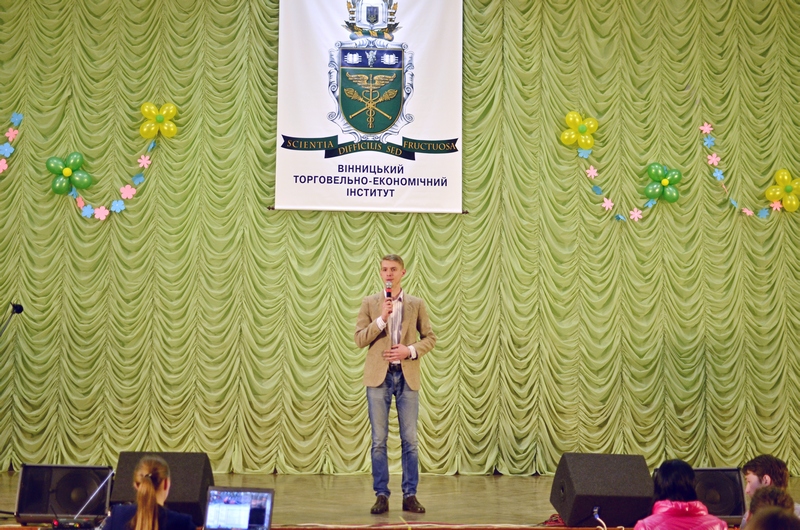 Організатором та ведучим весняного фестивалю КВН на «Кубок директора ВТЕІ КНТЕУ» був капітан команди КВН «Збірна Торгового», Голова Ради студентського самоврядування ВТЕІ – Денис Бантос, який на професійному рівні провів данний захід.
