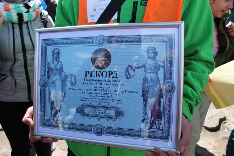 Організаторами рекорду є команда студентського туристичного клубу “Way to Freedom” Вінницького торговельно-економічного інституту КНТЕУ. Висловлюємо подяку директору ВТЕІ КНТЕУ Замковій Наталії Леонідівні за неймовірну підтримку студентської ініціативи, також музичному гурту "Зореліт", які створювали патріотичну атмосферу на найвищій точці України. Також щиро дякуємо усім супроводжуючим студентам, викладачам, перевізникам, медикам, МЧС, які допомагали та були надійною опорою протягом всієї подорожі! Дякуємо всім учасникам! Без вас би цього не відбулось! Ви всі рекордсмени! Ви всі переможці!