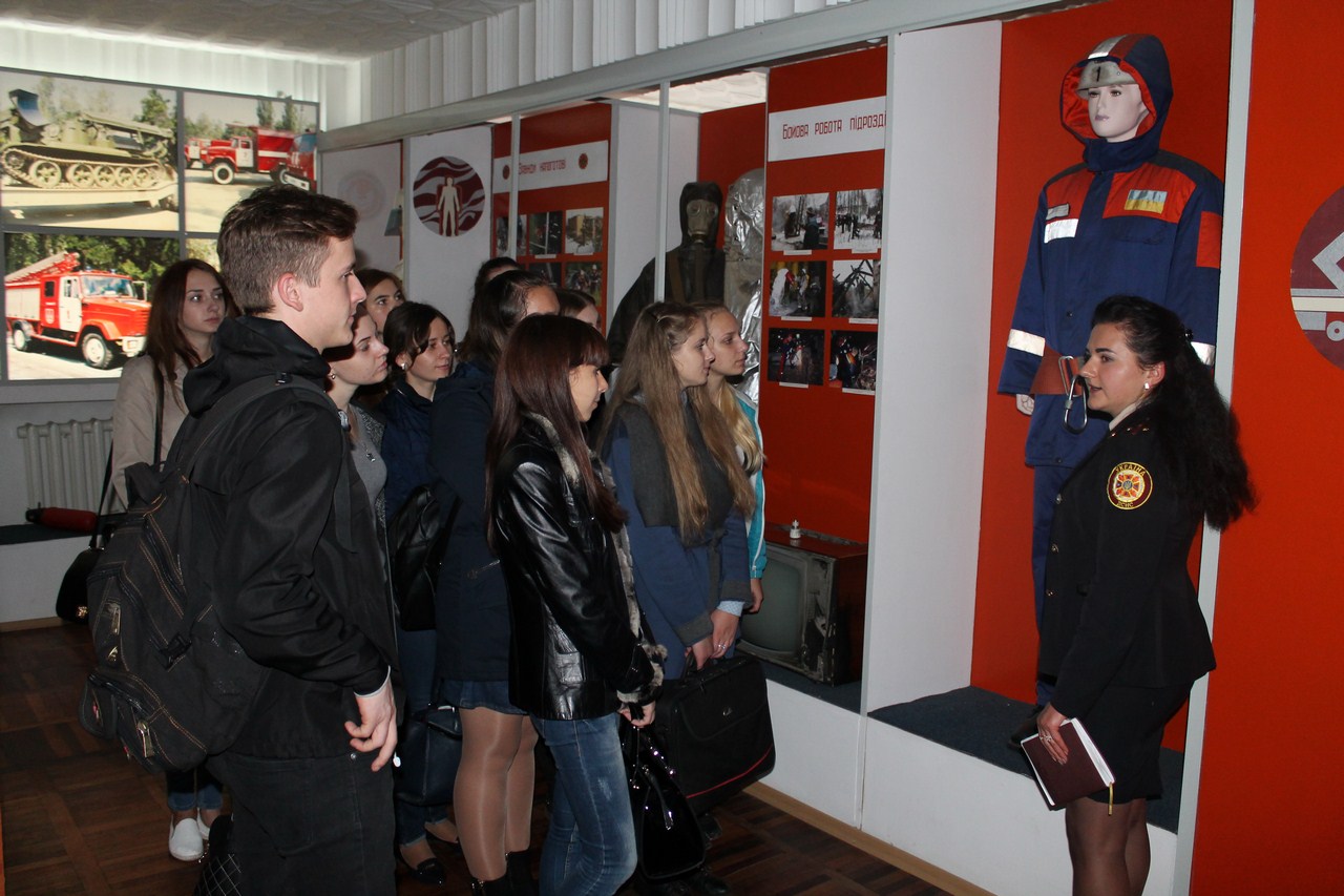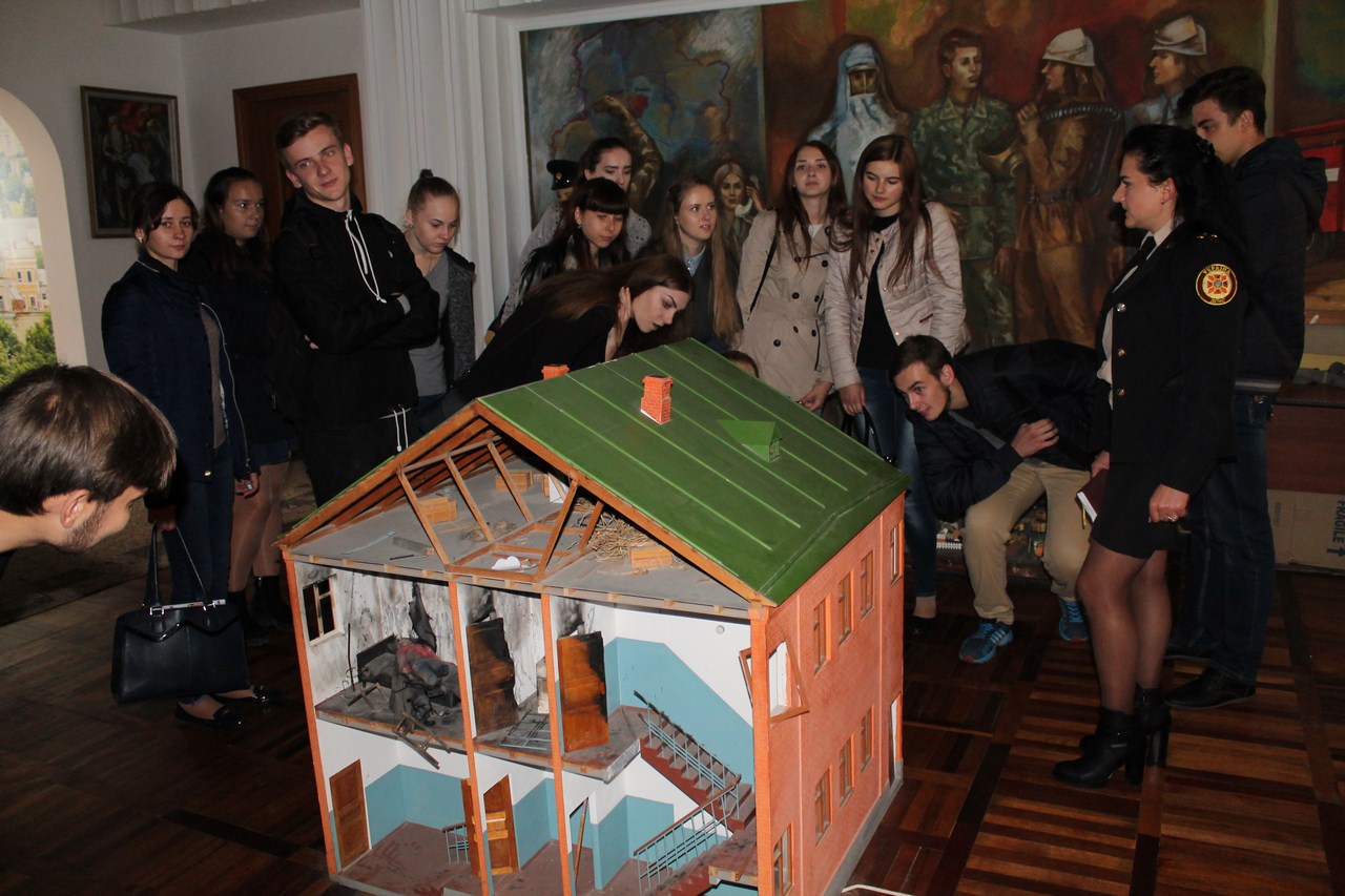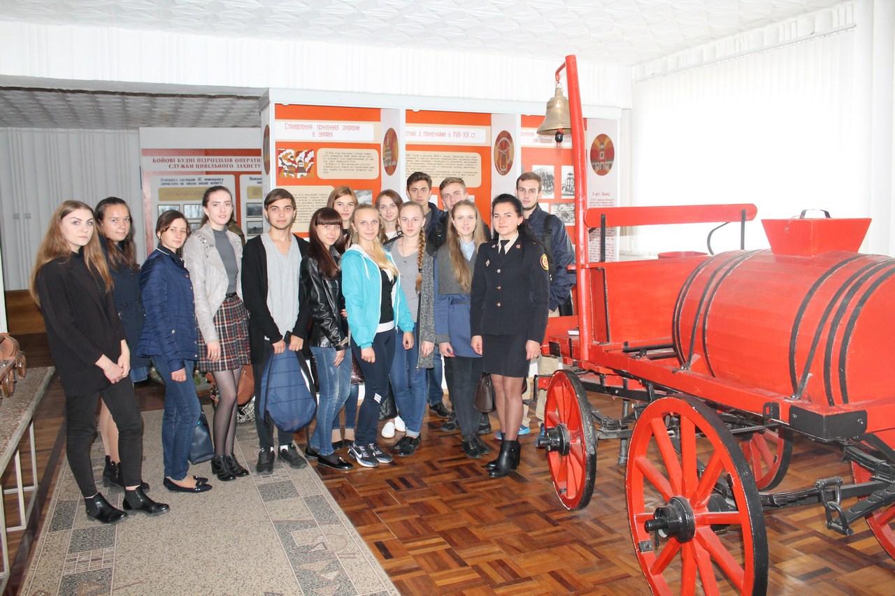 04 жовтня 2016 року студенти другого курсу спеціальності «Право» відвідали музей пожежно-рятувальної служби ГУ ДСНС України у Вінницькій області. Розпочалася екскурсія у світ історії служби «101» з розповіді про героїв, які пожертвували своїми життями під час ліквідації аварії на Чорнобильській атомній станції. Студенти під час екскурсії дізнались про діяльність пожежно-рятувальної служби Вінниччини, її історію та сьогодення. У виставкових залах побачили чимало цікавої та повчальної інформації про самовіддану, героїчну професію рятувальника. Студенти мали можливість оглянути засоби гасіння пожежі та пожежно-технічне обладнання, яке було на озброєнні пожежників у минулі століття. Побачили експонати кінно-бочковий хід та старовинні пожежні насоси, які збереглися до наших часів. Одна із експозицій музею присвячена пожежній безпеці та приладам, що допомагають людям запобігати загоранням, як на великих підприємствах, так і в побуті.