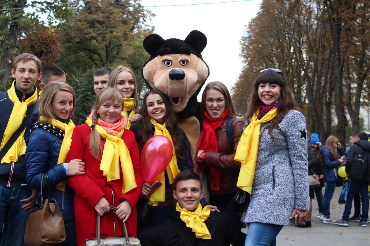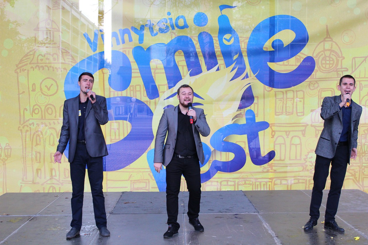 На площі розміщувались тематичні локації на будь-який смак, працювала SMILE-кухня та проходила презентація ВНЗ м.Вінниці. Усіх охочих пригощали солодощами та печивом, яке приготували студенти ВТЕІ КНТЕУ. Ініціатори свята обрали цей День невипадково: 1963-го року американский художник Гарві Белл уперше намалював усміхнене обличчя у жовтому колі – смайлик. І саме з тих пір уся планета 7 жовтня відзначає День Посмішки.