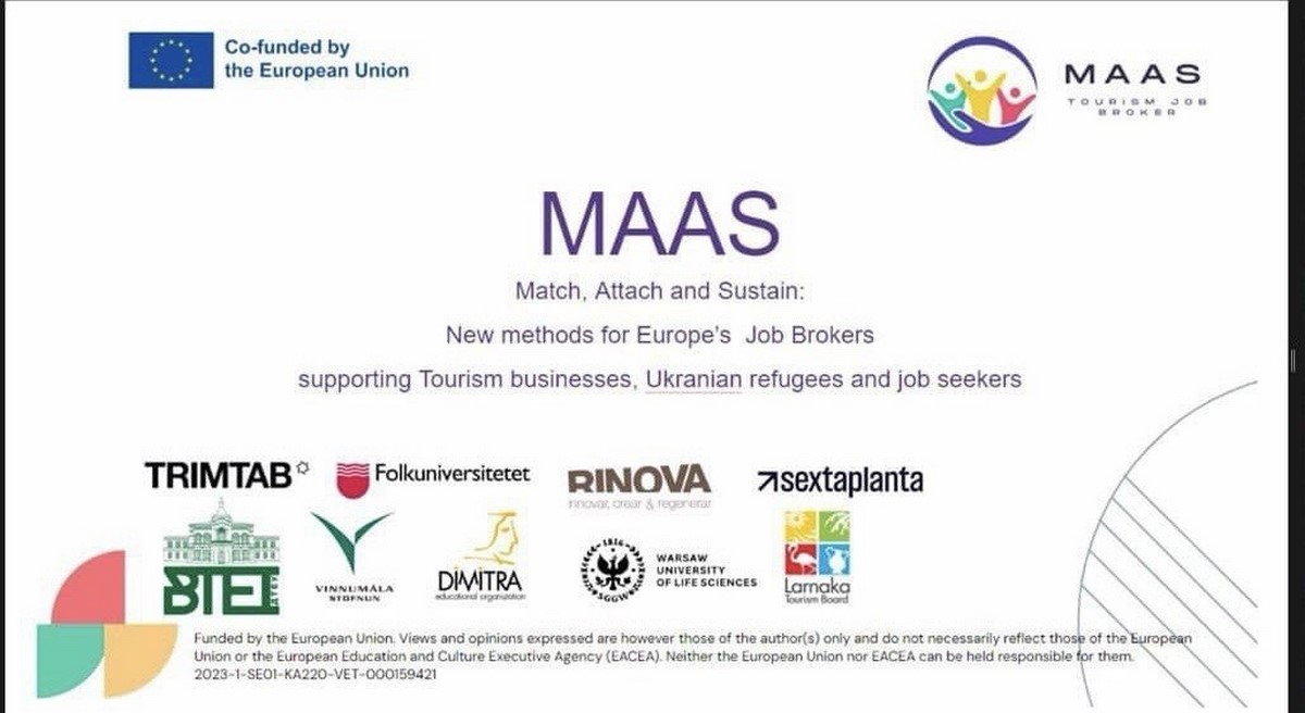 27 березня в рамках реалізації проєкту ВТЕІ ДТЕУ Erasmus + MAAS "Match, Attach and Sustain: New methods for Europe`s Job Brokers” відбулася четверта онлайн зустріч, організаторами якої були партнери проєкту Larnaka Tourism Board (Кіпр). Упродовж предметного воркшопу “Tourism Needs and Trends – EU” обговорювалися питання адаптації національних туристичних стратегій до європейських тенденцій у сфері туризму, особливостей туристичної діяльності як форми міжнародних відносин, а також сприяння інтеграції українців, які тимчасово потребують захисту закордоном, до країн ЄС, зокрема Кіпру.
