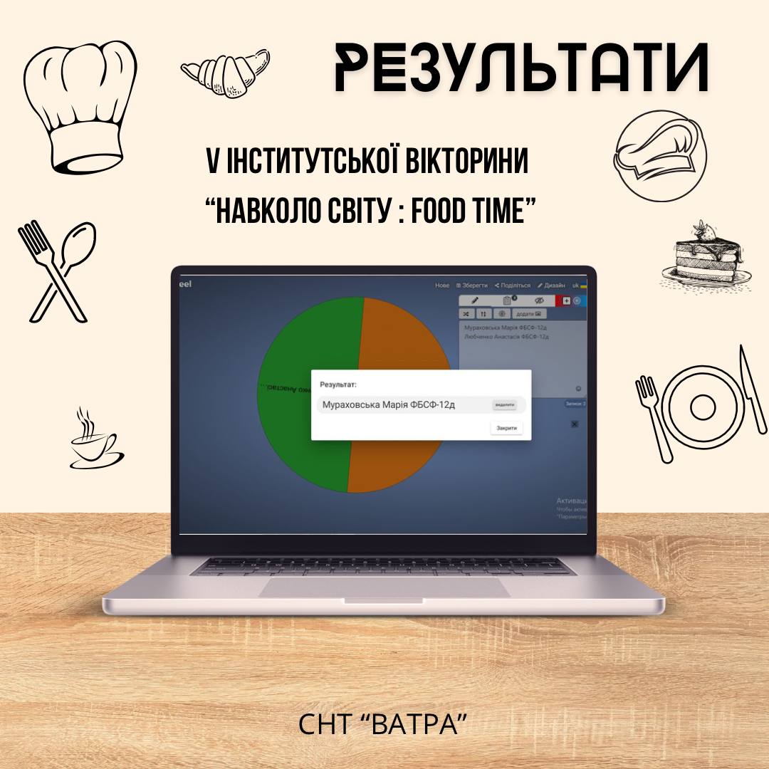 З 11-14 березня 2024 року студенти разом із СНТ «ВАТРА» відправились у кулінарну подорож навколо світу "Food time" - де смаки об'єднали і розкрили культурні особливості кожної країни, а саме: Туреччини, Канади та Грузії.