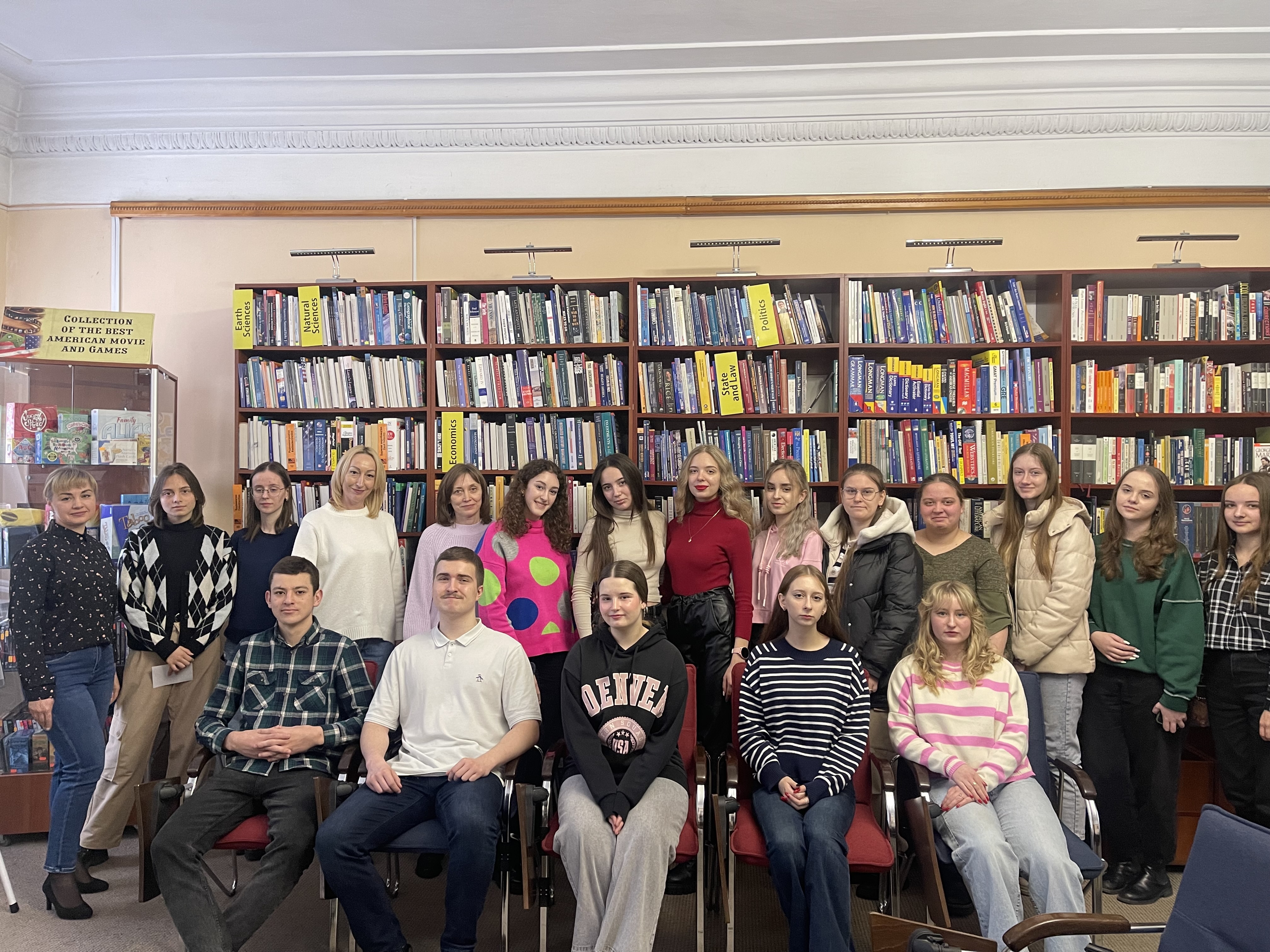 14 березня 2024 року в рамках проведення тижня обліково-фінансового факультету викладачі кафедри іноземної філології та перекладу та студенти спеціальностей «Філологія» та «Підприємництво та торгівля» відвідали інформаційну годину у відділі літератури іноземними мовами Вінницької обласної універсальної наукової бібліотеки імені Валентина Отамановського.