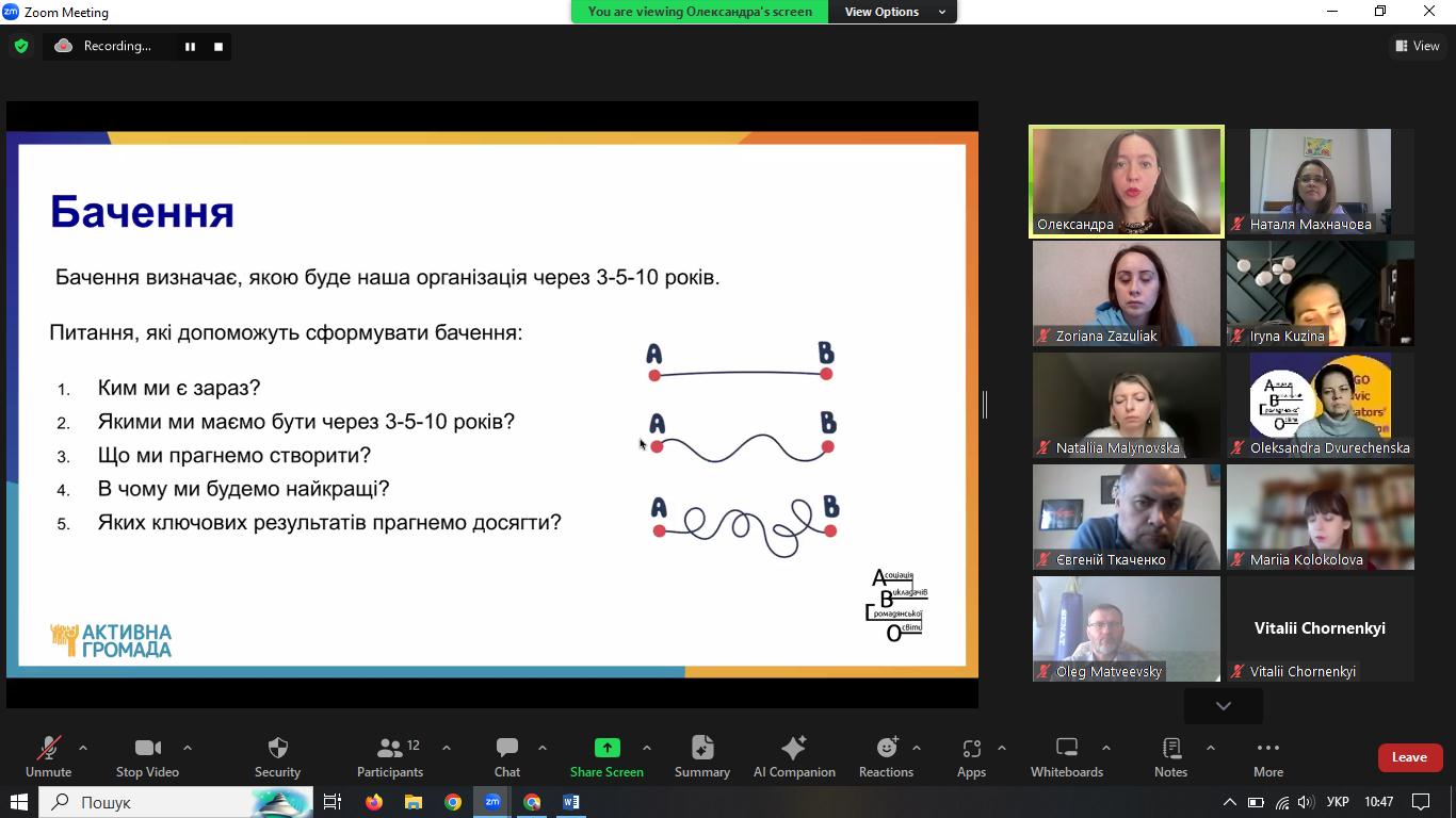 27 грудня 2023 року відбулась Стратегічна сесія ГО «Асоціація викладачів громадянської освіти» у режимі zoom-конференції. До роботи сесії долучилась Наталя Махначова, завідувачка кафедри менеджменту та адміністрування, викладачка курсу «Демократія: від теорії до практики» у Вінницькому торговельно-економічниму інституті.