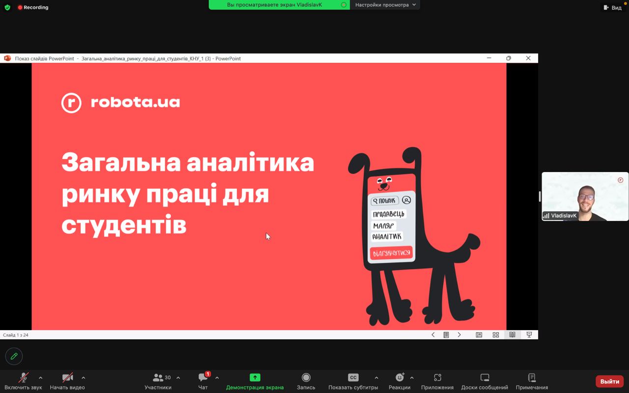 8 грудня 2023 року науково-педагогічні працівники кафедри маркетингу та реклами, а також студенти спеціальності 075 «Маркетинг» і 061 «Журналістика» взяли участь у вебінарі, організованому для учасників 18-го Українського студентського фестивалю реклами. Спікерами виступили Brand Manager компанії robota.ua Ольга Саранча та Sales Team Manager компанії robota.ua Владислав Котельницький. Тема їх виступу: «Тренди ринку праці».