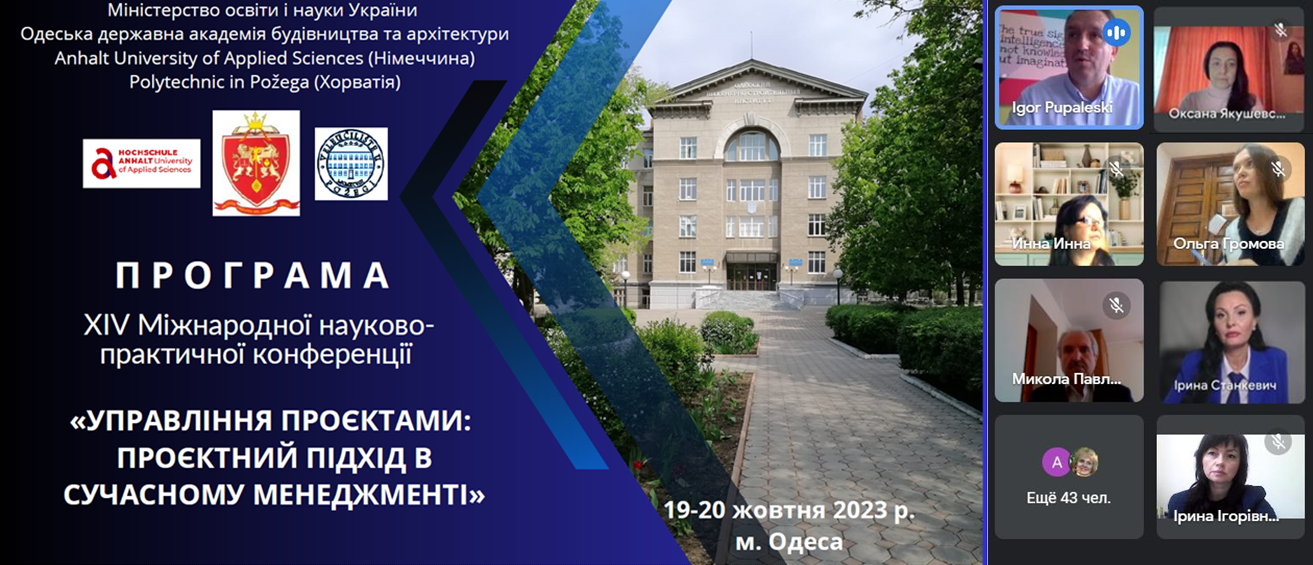 19-20 жовтня 2023 року науково-педагогічні працівники кафедри маркетингу та реклами і здобувачі ОС «магістр» ОП «Маркетинг» взяли участь у роботі XIV Міжнародної науково-практичної конференції «Управління проєктами: проєктний підхід в сучасному менеджменті», в рамках якої проведено пленарне засідання та круглий стіл, що організовані кафедрою менеджменту і маркетингу Одеської державної академії будівництва та архітектури (м. Одеса).