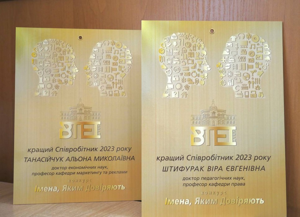 Працівники Вінницького торговельно-економічного інституту ДТЕУ Альона Танасійчук, доктор економічних наук, професор кафедри маркетингу та реклами та Віра Штифурак, доктор педагогічних наук, професор кафедри права, отримали нагороди "Кращий Співробітник 2023 року" у конкурсі "Імена, Яким Довіряють". Ця важлива подія підкреслює високий професіоналізм та відданість співробітників інституту. Працюємо заради миру! Бажаємо подальших звершень!