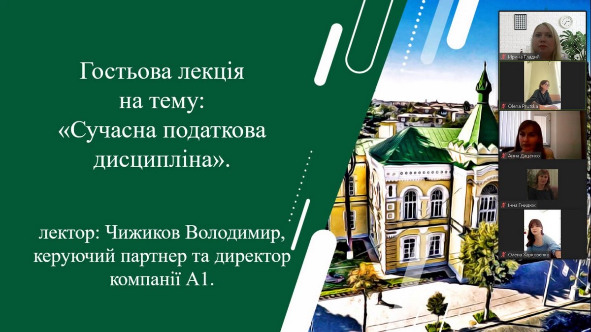 1 червня 2023 року відбулась міжкафедральна гостьова лекція. Лектор: Чижиков Володимир - Керуючий партнер та директор аудиторської компанії «А1» м. Київ. Тема лекції «Сучасна податкова дисципліна». Лектор розповідав про основні аспекти зміни в міжнародному оподаткуванні та їх перспективи для України. Дав детальну характеристику трансформації сучасної світової податкової системи. Розповів про реорганізацію в європейському податковому законодавстві, як узгоджуються норми міжнародних стандартів і які перспективи очікують українського платника податків.