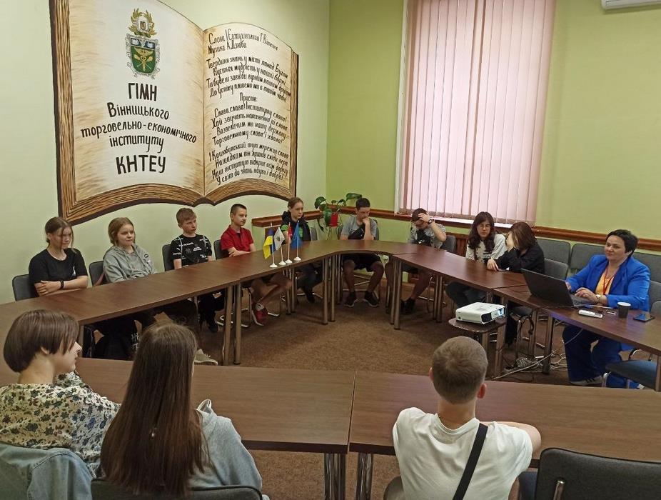 25 травня 2023 року школярі 8-В класу КЗ «Вінницький ліцей №10» завітали до ВТЕІ ДТЕУ на захід в межах дії Меморандуму про співпрацю. Для учнів професор кафедри маркетингу та реклами Альона Танасійчук провела практичне заняття «Дискримінаційна реклама». Мета заходу - формування соціальних та полікультурних компетентностей учнів, вміння аналізувати рекламні повідомлення, висловлювати власну думку та застосовувати надуті знання в конкретних життєвих ситуаціях.