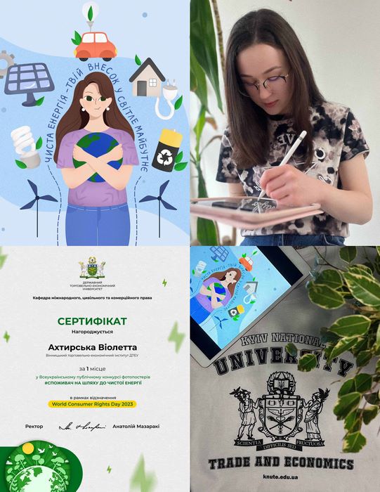 І місце отримала Ахтирська Віолетта, студентка ОС «бакалавр» спеціальності 075 «Маркетинг» групи МР-42д за роботу під назвою «Чиста енергія – твій внесок у світле майбутнє».