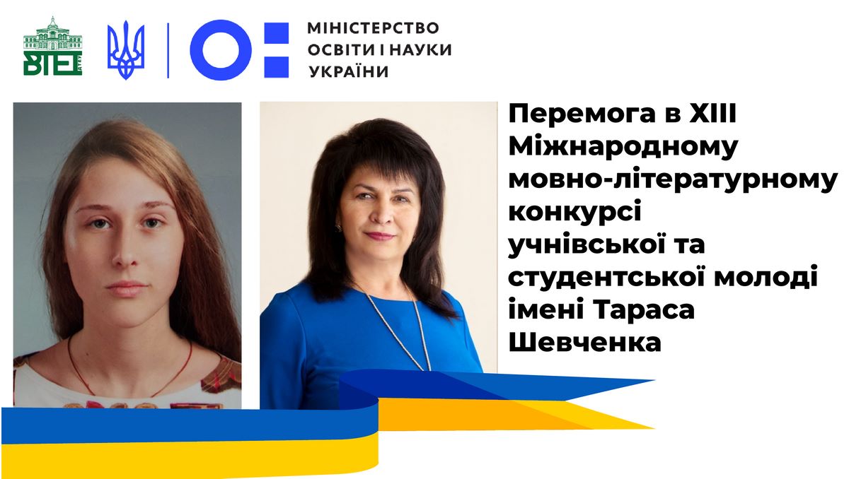 Щиро вітаємо з перемогою в конкурсі Єлизавету Пивовар (СЗ-11 ) та її керівника к.філол.н., доцента кафедри іноземної філології та перекладу Валентину ТИМКОВУ! За результатами конкурсу Єлизавета отримала диплом ІІІ ступеня (наказ МОН України № 471 від 24.04.2023 р.). Зичимо подальших перемог і звершень!