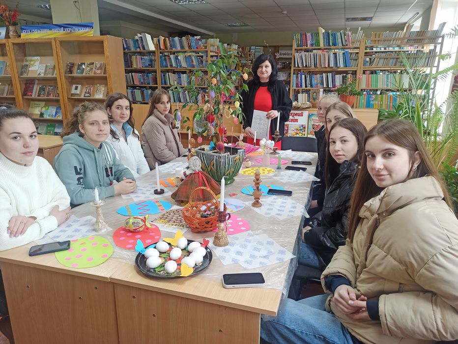 Провела майстер-клас «Писанковий дивосвіт» фахівець бібліотеки Олена Шевчук, яка розповіла студентам про написання писанок, їх види, символічність кольорів та орнаментів. Здобувачі вищої освіти жваво обговорювали та цікавились технікою розпису, учасники заходу мали можливість власноруч виготовити свою ексклюзивну писанку. Протягом заходу студентів надихала і підтримувала Олеся Олександрівна Самохвал, заступник декана обліково-фінансового факультету.