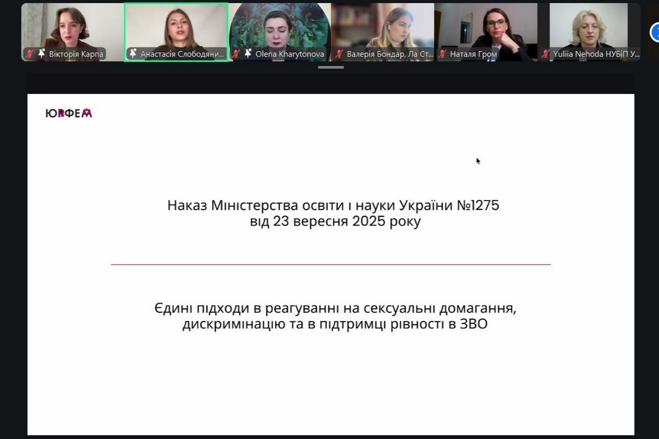 08 квітня 2026 року завідувачка кафедри права Тетяна Сухоребра, доцентка кафедри права Наталія Костюк та доцентка кафедри права Ірина Білоус брали участь у діалозі «Безпечний університетський простір: впровадження політик протидії дискримінації, сексуальним домаганням та підтримки рівності у закладах вищої освіти України», який був організований Асоціації жінок-юристок України “ЮрФем”.