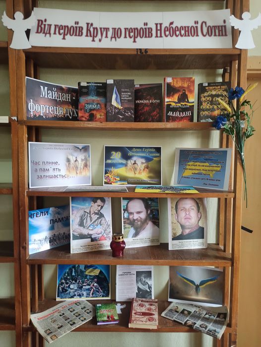 З нагоди цієї події співробітники бібліотеки підготували книжкову виставку «Від героїв Крут до героїв Небесної Сотні», яка представлена в читальній залі №3.