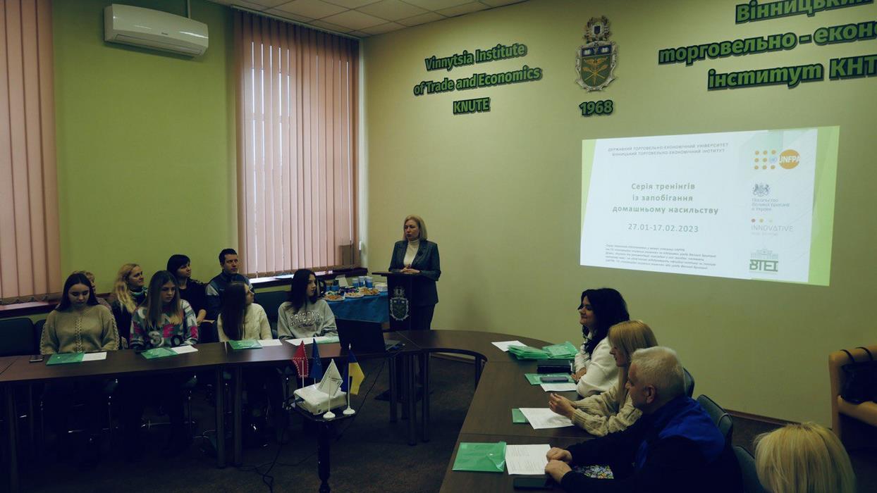 27 січня 2023 року для студентів спеціальності «Право» та «Соціальне забезпечення», а також для викладачів кафедри права, кафедри економіки та міжнародних відносин проведено перший із серії тренінг на тему «Причини і передумови поширення домашнього насильства», який провела Жанна Грушко – адвокат, керівник адвокатського центру Жанни Грушко, голова молодіжного комітету НААУ “NextGen” у Вінницькій області, кандидатка юридичних наук, доцентка кафедри права ВТЕІ ДТЕУ.