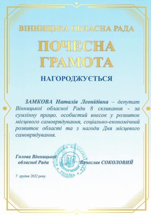 Колектив та студенство Вінницького торговельно-економічного інституту ДТЕУ щиро вітає директора з отриманням відзнаки Вінницької обласної Ради.