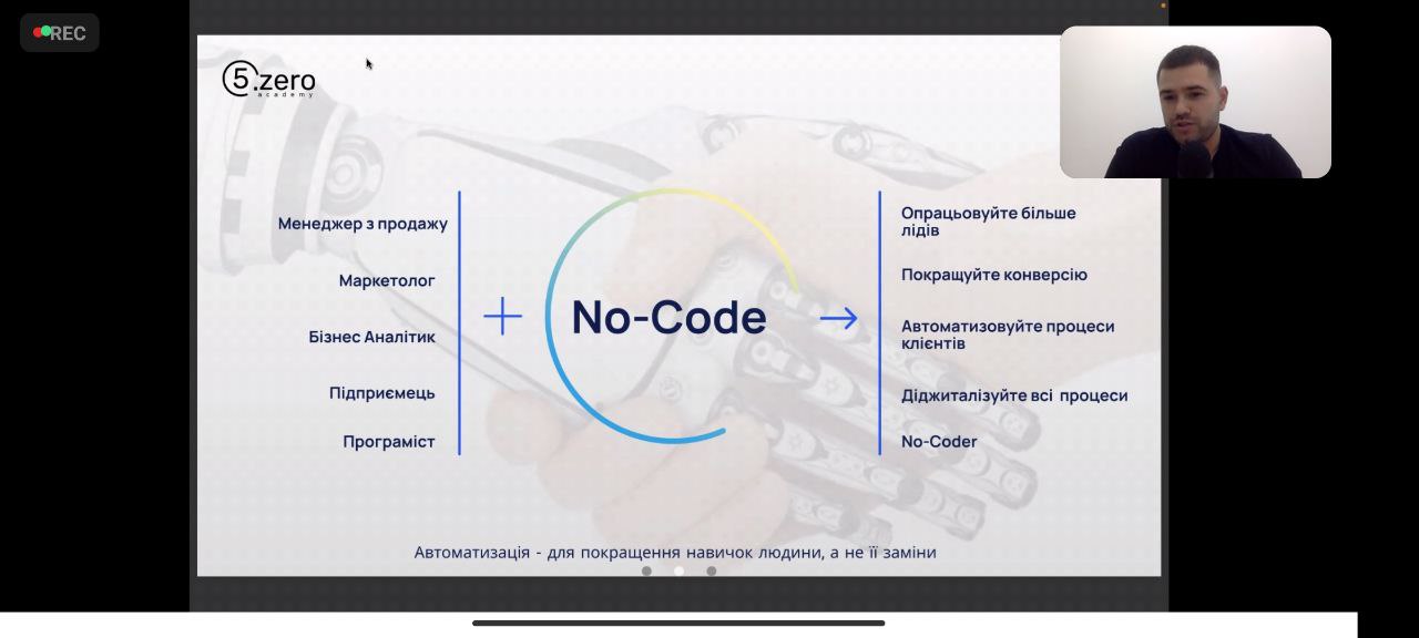 30 листопада 2022 року здобувачі ОС «Магістр» та «Бакалавр» спеціальності 075 Маркетинг разом із науково-педагогічними працівниками кафедри маркетингу та реклами взяли участь у вебінарі «No-code технології для лідогенерації», що проводив найпопулярніший тренер 5.0 Academy Степан Доктор — Low Code майстер, партнер року Make (former Integramat) 2021 NPS 4.96/5.0.
