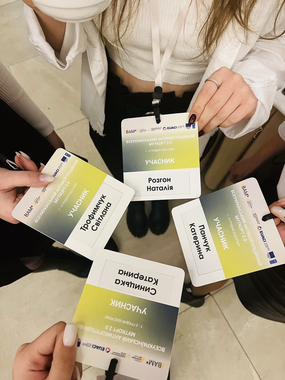 Студентки 3 курсу спеціальності «Право» Катерина Синицька, Наталія Розгон, Світлана Трофимчук, Катерина Панчук стали фіналістками Всеукраїнського антикорупційного муткорту, організованого НАБУ та НАЗК за сприяння ПРООН в Україні у межах Програми ООН із відновлення та розбудови миру за фінансової підтримки ЄС та за підтримки EUACI, провідної антикорупційної програми в Україні.