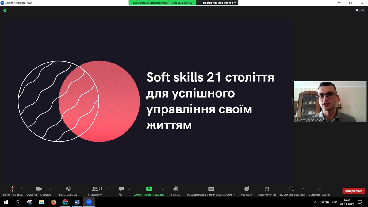 9 листопада 2022 року в рамках відзначення тижня факультету економіки, менеджменту та права відбувся майстер-клас «Soft Skills 21 століття для успішного управління своїм життям», який провів Ярослав Саєнко, Software Test Engineer, компанія Xelon AG (Швейцарія).