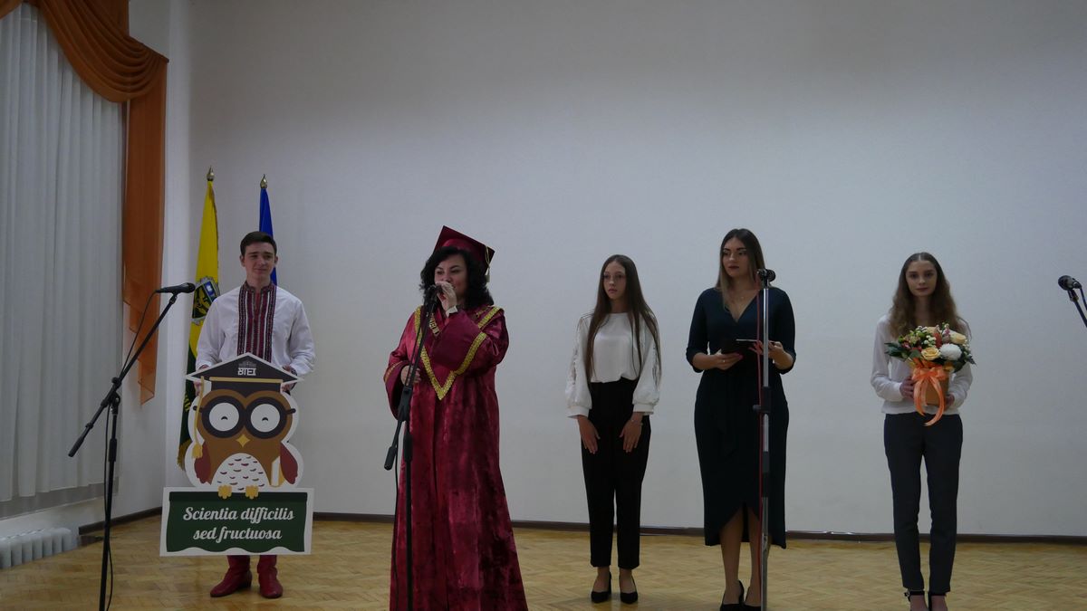 З вітальним словом звернулися директор інституту Наталія Замкова, а також декан факультету торгівлі, маркетингу та сфери обслуговування Сергій Гирич та декан факультету економіки, менеджменту та права Лариса Сікорська.