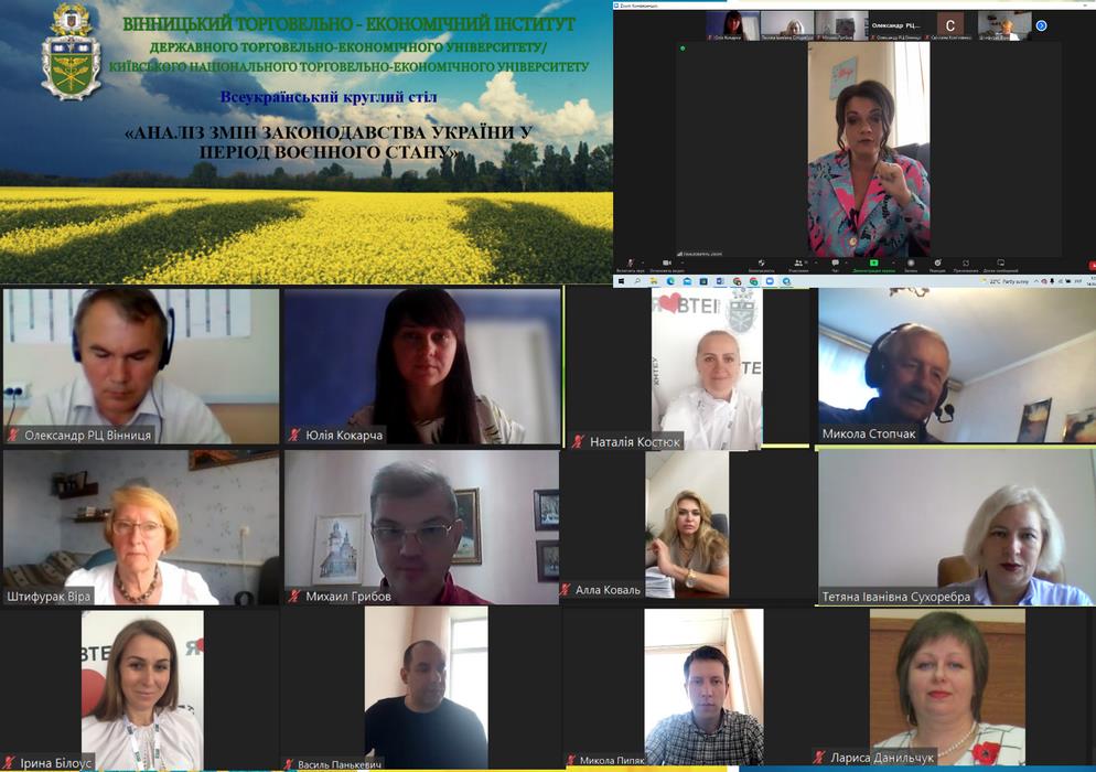 14 червня 2022 року кафедрою права дистанційно на платформі Zoom було проведено Всеукраїнський круглий стіл на тему «Аналіз змін законодавства України у період воєнного стану».