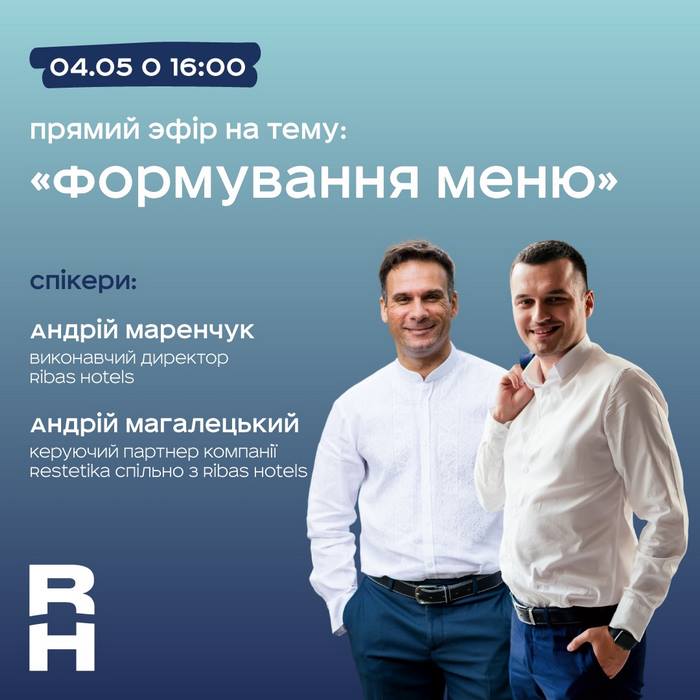 4 травня 2022 року науково-педагогічні працівники кафедри туризму та готельно-ресторанної справи та здобувачі вищої освіти за спеціальностями «Готельно-ресторанна справа», «Туризм», «Харчові технології» долучилися до онлайн-вебінару «Формування меню», організованому виконавчим директором мережі готелів «Ribas Hotels» Андрієм Маренчуком та керуючим партнером компанії «Restetika» спільно з «Ribas Hotels», к.е.н., президентом Асоціації Кулінарів, ресторатором з 20-ти річним досвідом Андрієм Магалецьким.