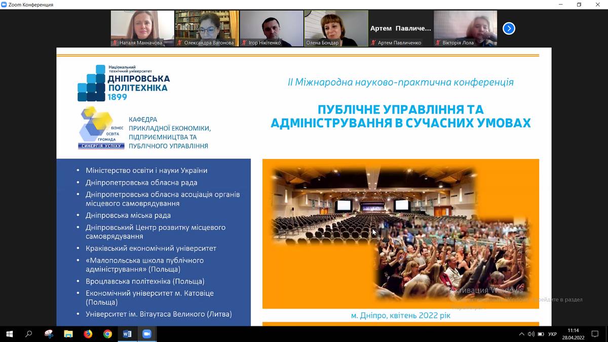 28 квітня 2022 року науково-педагогічні працівники кафедри менеджменту та адміністрування та здобувачі вищої освіти спеціальності «Публічне управління та адміністрування», долучилися до ІІ Міжнародної науково-практичної конференції «Публічне управління та адміністрування в сучасних умовах», організованої Національним технічним університетом «Дніпровська політехніка».