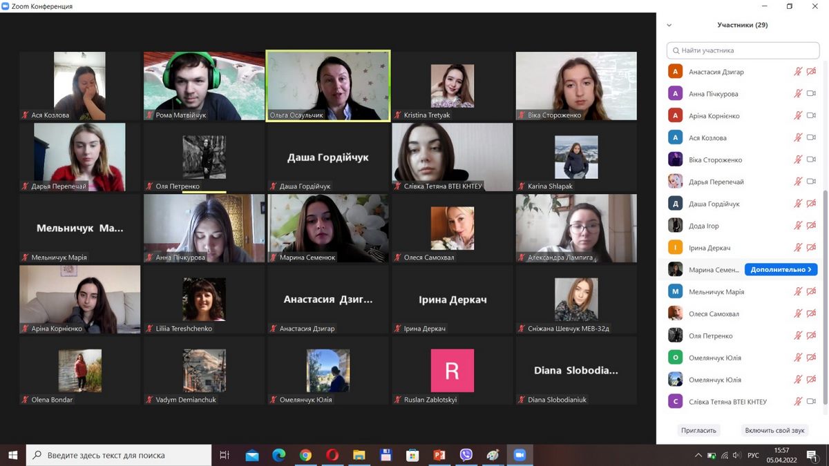 5 квітня 2022 року в режимі онлайн під час зум-зустрічі відбулося відкрите засідання дискусійного клубу «Сучасні лінгвістичні студії» під керівництвом доц. Осаульчик О.Б., на тему «Вербальні та невербальні засоби мовної комунікації». У засіданні гуртка взяли участь 14 студентів, серед яких були студенти як освітнього ступеня «магістр», так і «бакалавр» різних спеціальностей. Презентовані доповіді були тематично звуженими в контексті загальної теми. Після кожної доповіді в розрізі поставлених запитань відбувалося жваве обговорення. За результатами дискусії студенти виявили бажання продовжити дослідження визначеної тематики, зокрема аспект прихованих можливостей невербальної комунікації у сучасному світі активного ділового спілкування.