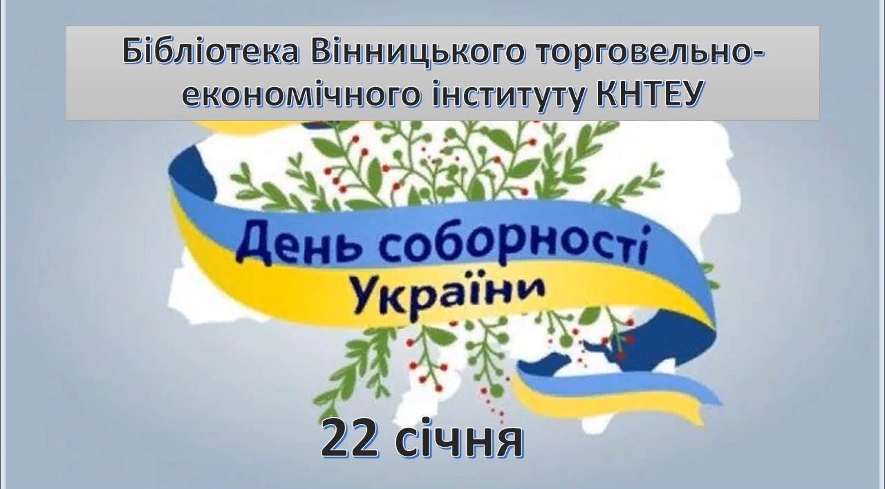 Бібліотека ВТЕІ КНТЕУ запрошує ознайомитися із віртуальною виставкою з нагоди Дня Соборності України
