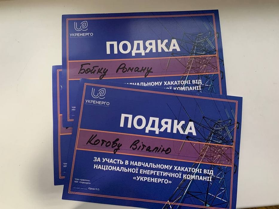 За креативність у вирішенні завдань та цікавий підхід до реалізації проєкту студенти були відзначені подяками від Правління НЕК "Укренерго".